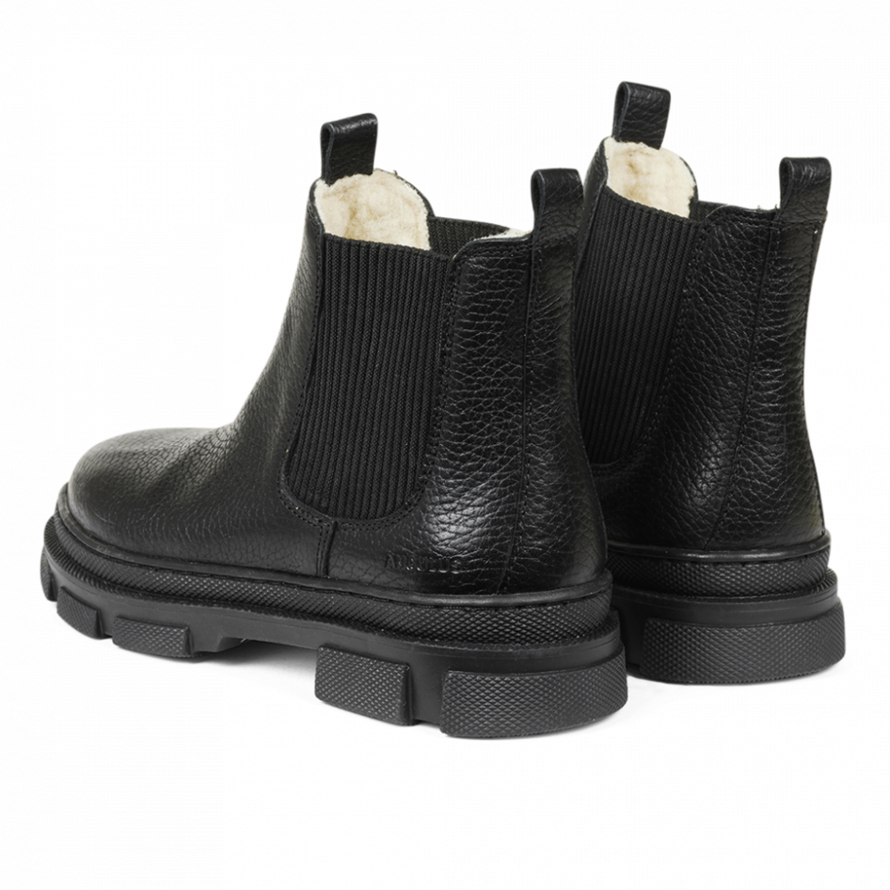 Класичні чоботи-челсі зі шкіри з вовняною підкладкою без хрому та дихаючою. Чобіт має закруглений носок, функціональні еластичні боки для легкого взування та знімання, а також легку, м'яку та гнучку чорну підошву з натурального каучуку з відновлюваного натурального каучуку. Виготовлені з натуральної та дихаючої шкіри. Розроблені в Данії та ручної роботи з любов'ю в Португалії. Завжди вимірюйте стопу вашої дитини перед покупкою, щоб переконатися, що ви обрали правильний розмір. Ми рекомендуємо припуск на зріст 1-1,5 см.