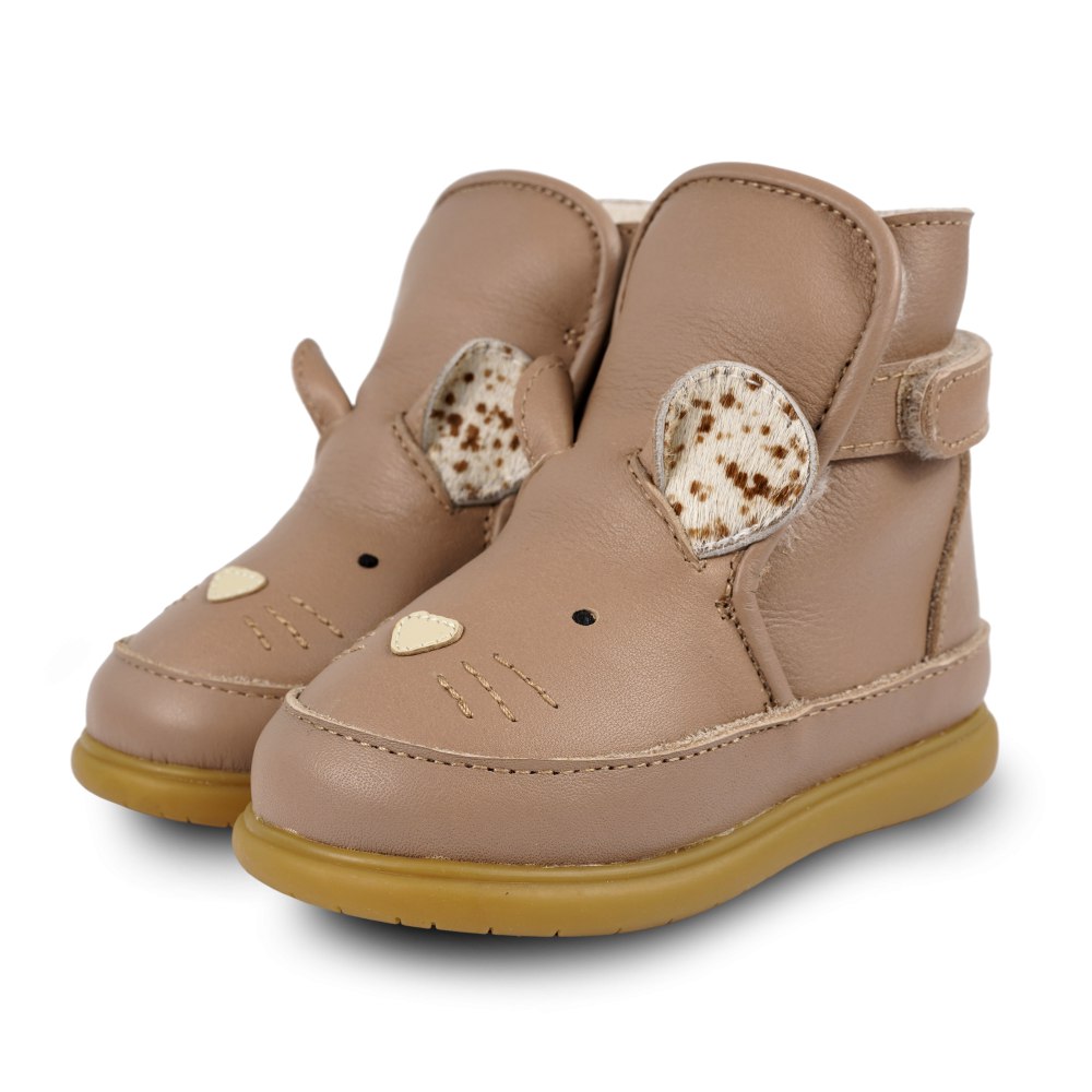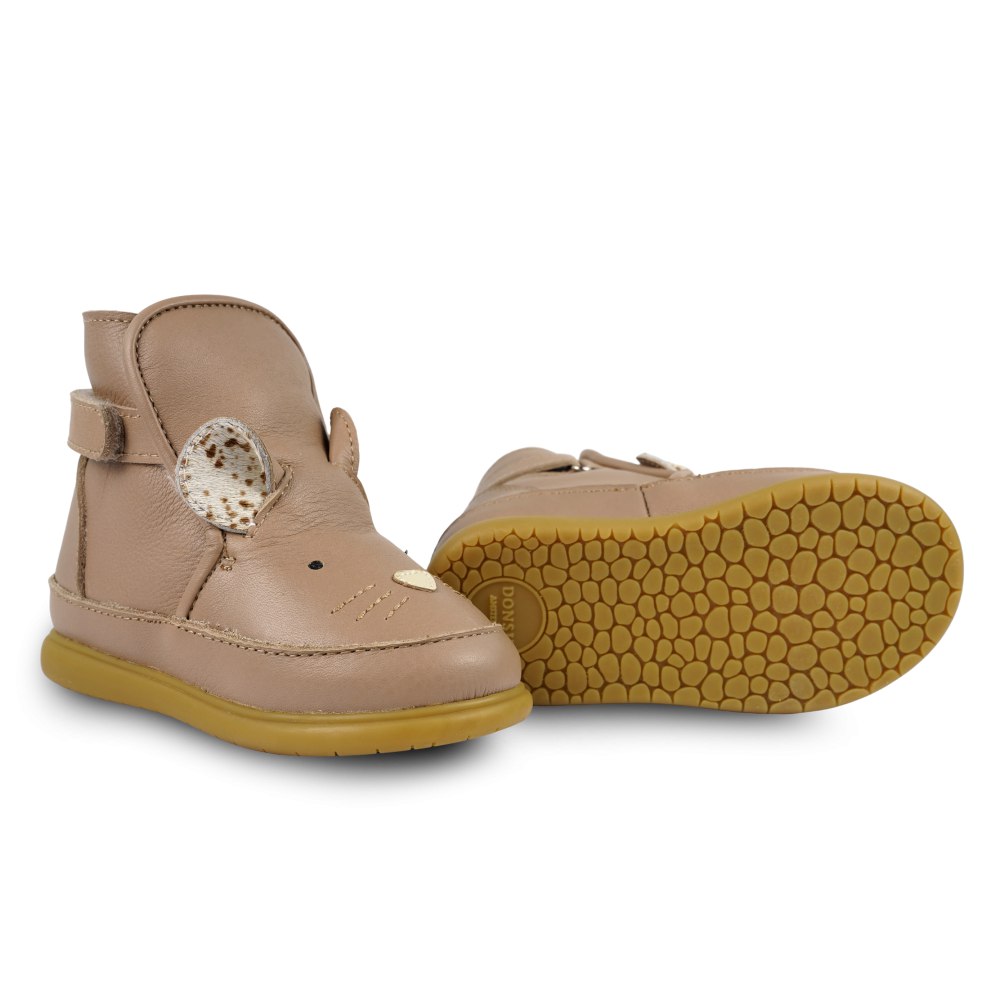 Чарівні, як мишка! Дитяче взуття Dubu Exclusive – ідеальний супутник для пригод на свіжому повітрі, пропонуючи ідеальну підтримку для перших кроків. Гнучка підошва з трохи піднятою п'ятою забезпечує покращену підтримку. Регульований ремінець на липучці забезпечує щільне прилягання навколо щиколотки, а посилена структура, особливо навколо п'яти, забезпечує необхідну підтримку та стабільність для зростаючих ніжок вашого малюка. Наші фірмові персонажі тварин Donsje додають стильного завершального штриха цьому взуттю зі 100% преміальної шкіри.