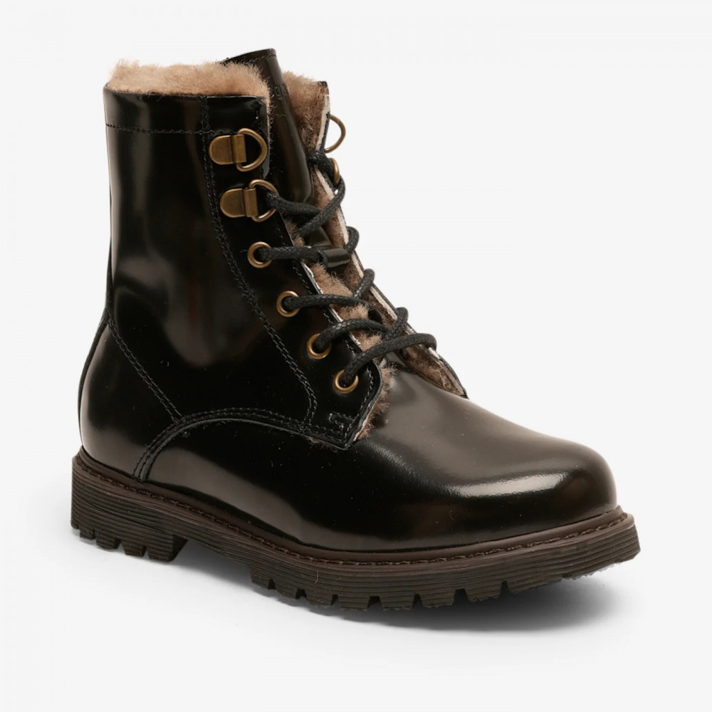 Класні зимові чоботи з довгим халявою та шнурками. Чобіт має терморегулюючу підкладку з овчини, яка зігріває ніжки дитини під час усіх зимових пригод. Практична блискавка дозволяє дитині легко взувати та знімати чобіт. Класні зимові чоботи - Підкладка з натуральної та теплої овчини - Практична блискавка - Натуральна та дихаюча шкіра - Датський дизайн - Ручна робота в Португалії