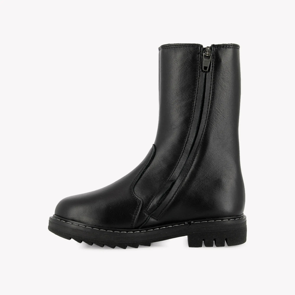 Ці гладенькі шкіряні черевики до щиколотки легко взувати завдяки еластичній смужці та внутрішній блискавці. Їхня нековзна підошва з виступами забезпечує чудове зчеплення. Синтетична підкладка забезпечує оптимальну ізоляцію від холоду, а шкіряна устілка гарантує комфортну посадку. Доступні тут у чорному кольорі, вони поєднують стиль, комфорт та міцність.