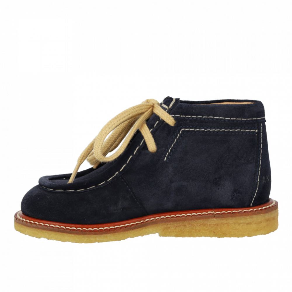 Замшеві туфлі з широким носком та декоративною строчкою. Взуття має бавовняні шнурки та легку, м'яку та гнучку крепову гумову підошву з відновлюваного натурального каучуку, вирізану для додаткової підтримки склепіння стопи. Взуття має м'яку устілку, підкладку зі шкіри без хрому та фіксовану п'яту для додаткового комфорту та підтримки. Виготовлено з натуральної та дихаючої шкіри. Розроблено в Данії та виготовлено вручну з любов'ю в Португалії. Завжди вимірюйте стопу вашої дитини перед покупкою, щоб переконатися, що ви обрали правильний розмір. Ми рекомендуємо припуск на зріст 1-1,2 см.