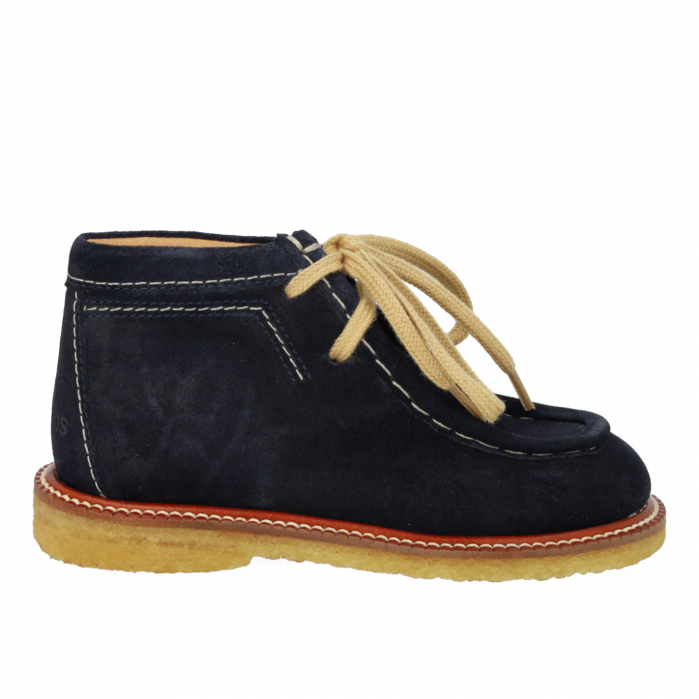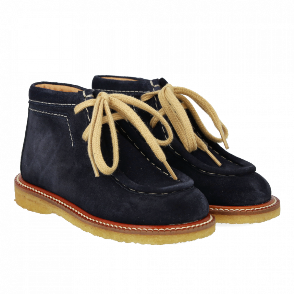 Замшеві туфлі з широким носком та декоративною строчкою. Взуття має бавовняні шнурки та легку, м'яку та гнучку крепову гумову підошву з відновлюваного натурального каучуку, вирізану для додаткової підтримки склепіння стопи. Взуття має м'яку устілку, підкладку зі шкіри без хрому та фіксовану п'яту для додаткового комфорту та підтримки. Виготовлено з натуральної та дихаючої шкіри. Розроблено в Данії та виготовлено вручну з любов'ю в Португалії. Завжди вимірюйте стопу вашої дитини перед покупкою, щоб переконатися, що ви обрали правильний розмір. Ми рекомендуємо припуск на зріст 1-1,2 см.