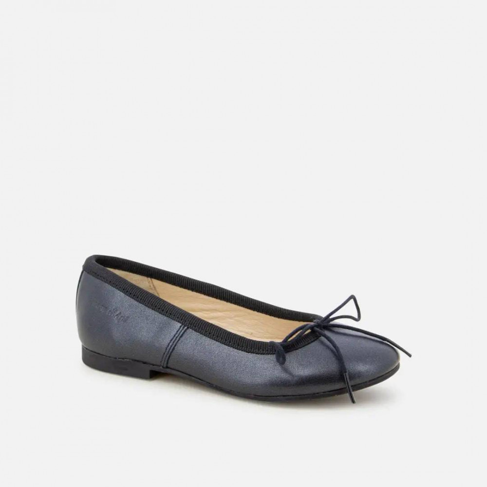 Ці дитячі балерини представлені у версії з гладкої чорної шкіри. Це м'яке, легке взуття виготовлене з якісних матеріалів для правильного розвитку стопи.