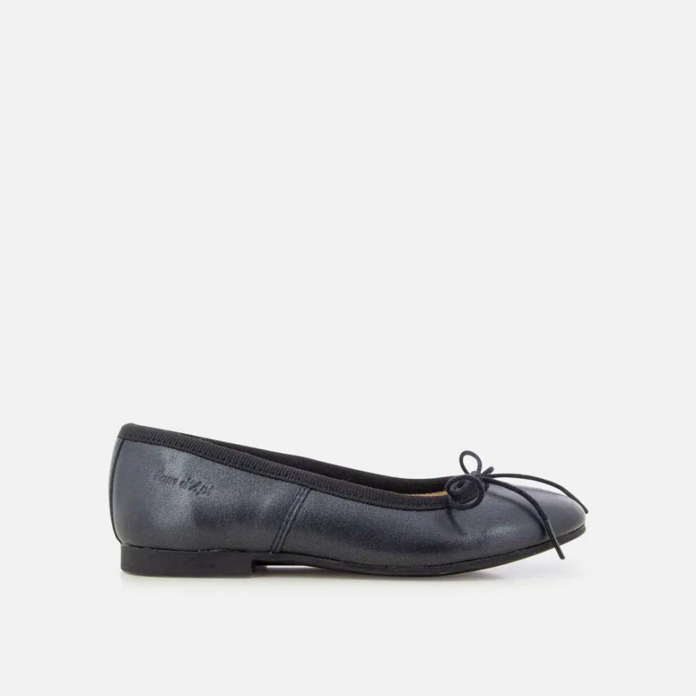 Ці дитячі балерини представлені у версії з гладкої чорної шкіри. Це м'яке, легке взуття виготовлене з якісних матеріалів для правильного розвитку стопи.