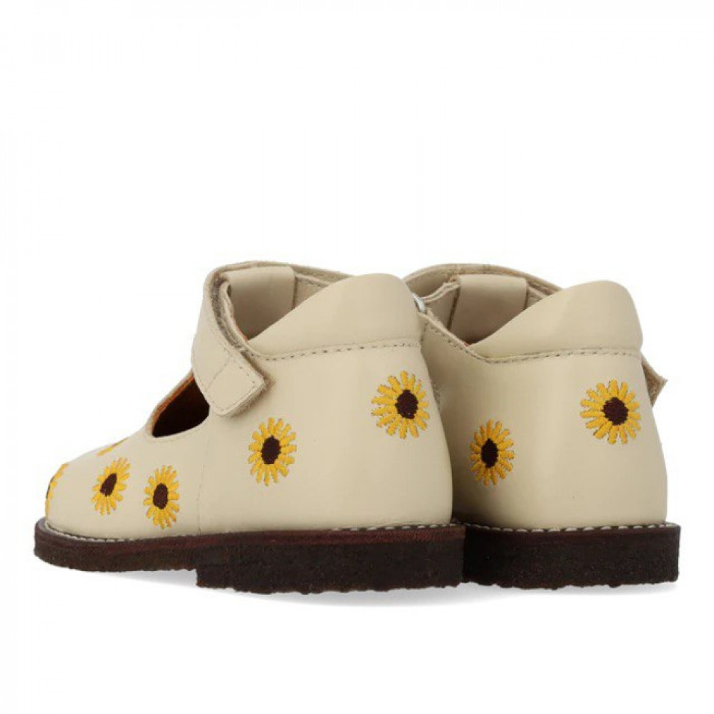 Класична Мері Джейн для початківців зі шкіри з вишивкою соняшника. Mary Jane має Т-подібний ремінець і регульований ремінь на липучці, фіксований каблук із м’яким коміром для додаткового комфорту, стабільності та підтримки, м’яку устілку, шкіряну підкладку без хрому та легку, м’яку та гнучку темно-коричневу відновлювану підошву з натурального каучуку, прикрашену декоративними контрастними швами. Виготовлений з натуральної дихаючої шкіри. Розроблено в Данії та виготовлено вручну з любов’ю в Португалії. Завжди вимірюйте стопу дитини перед покупкою, щоб переконатися, що ви підібрали правильний розмір. Ми рекомендуємо припуск 1 см.