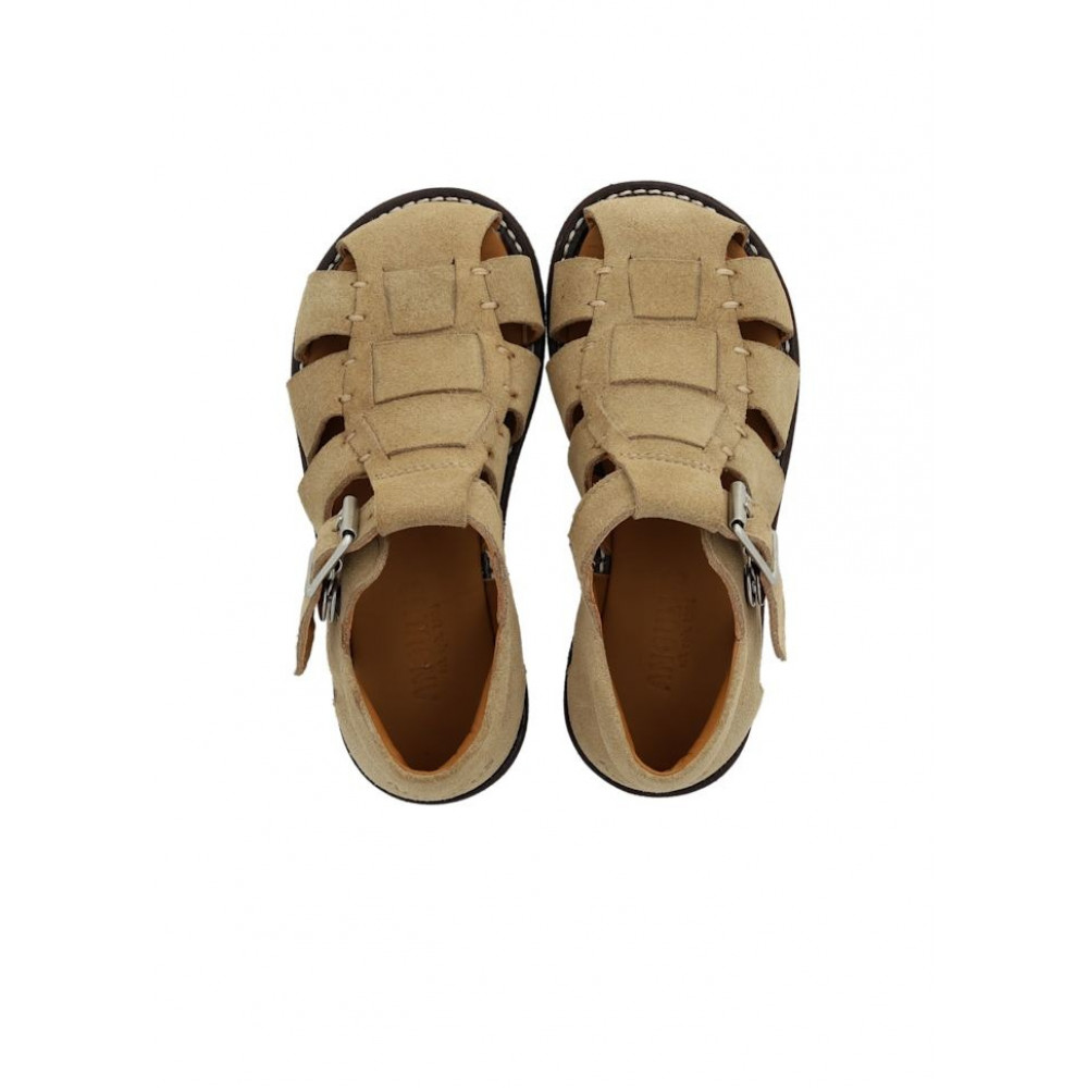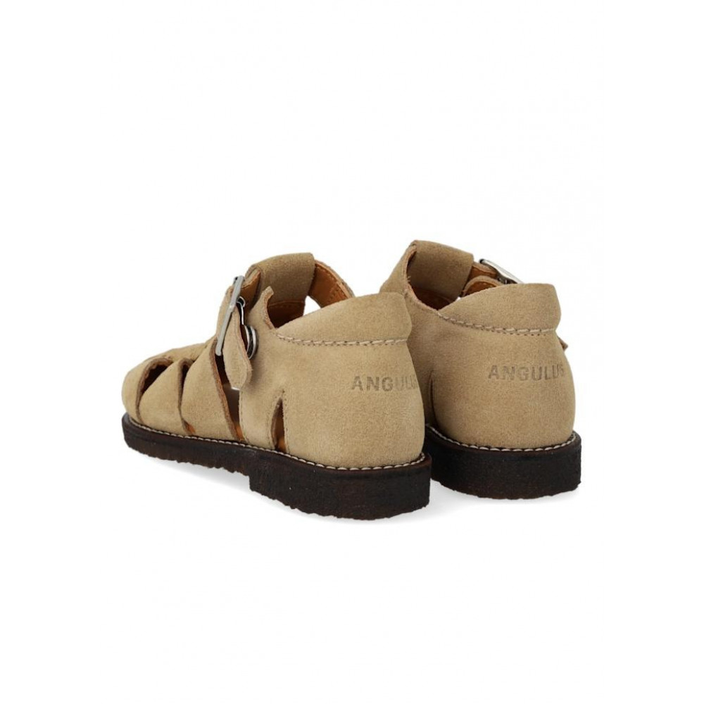 Шкіряні сандалі Fisherman’ з прострочкою. Ці сандалі – переосмислена класика ANGULUS з регульованою застібкою на пряжці та практичною прихованою кнопкою, закритим носком, тисненим логотипом на п'яті, м'якою устілкою, підкладкою зі шкіри без хрому та легкою, м'якою та гнучкою темно-коричневою креп-гумовою підошвою з відновлюваного натурального каучуку з акцентом на підтримку склепіння стопи. Виготовлені з натуральної та дихаючої шкіри. Розроблено в Данії та з любов'ю виготовлено вручну в Португалії. Завжди вимірюйте дитячу стопу перед покупкою, щоб переконатися, що ви обрали правильний розмір. Ми рекомендуємо припуск на зріст 1 см.