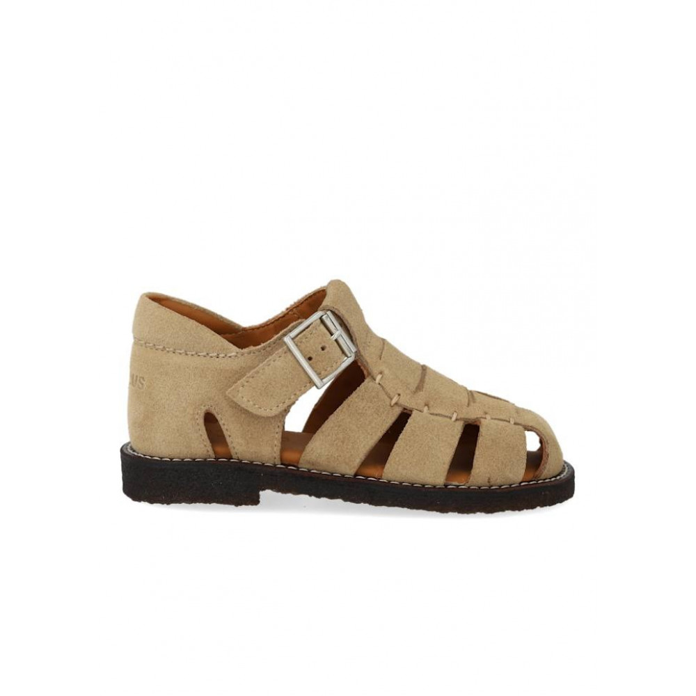 Шкіряні сандалі Fisherman’ з прострочкою. Ці сандалі – переосмислена класика ANGULUS з регульованою застібкою на пряжці та практичною прихованою кнопкою, закритим носком, тисненим логотипом на п'яті, м'якою устілкою, підкладкою зі шкіри без хрому та легкою, м'якою та гнучкою темно-коричневою креп-гумовою підошвою з відновлюваного натурального каучуку з акцентом на підтримку склепіння стопи. Виготовлені з натуральної та дихаючої шкіри. Розроблено в Данії та з любов'ю виготовлено вручну в Португалії. Завжди вимірюйте дитячу стопу перед покупкою, щоб переконатися, що ви обрали правильний розмір. Ми рекомендуємо припуск на зріст 1 см.