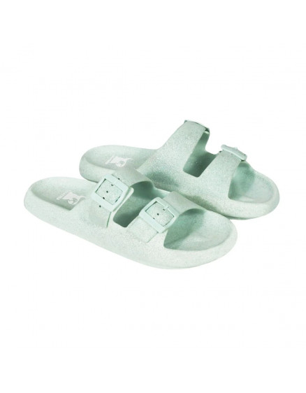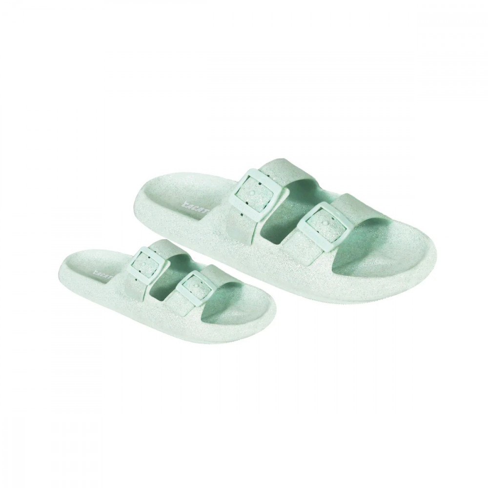 Закохайтеся в наші нові регульовані сандалі для ще більшого комфорту! Світло-блакитні блискучі сандалі Jessy мають два регульовані ремінці, які ідеально підходять до форми вашої ноги. Ніжний блиск на цих плоских сандаліях для жінок та дітей додає нотку гламуру.
