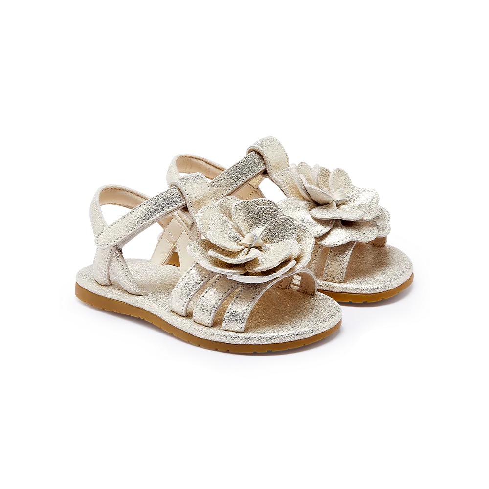 Не сумуй, жовтець! Сандалі Iles Fields Shimmer Buttercup запрошують твою малечу досліджувати поля, квіти та маленьких комах з новою цікавістю. Виготовлені зі 100% високоякісної металевої шкіри та зі 100% гумовою підошвою для додаткового комфорту, ці сандалі мають прості у використанні регульовані ремінці на липучках, ідеальні для крихітних пальчиків. Гарна квітка жовтця, виконана у фірмовому стилі Donsje, додає чарівного завершального штриха.