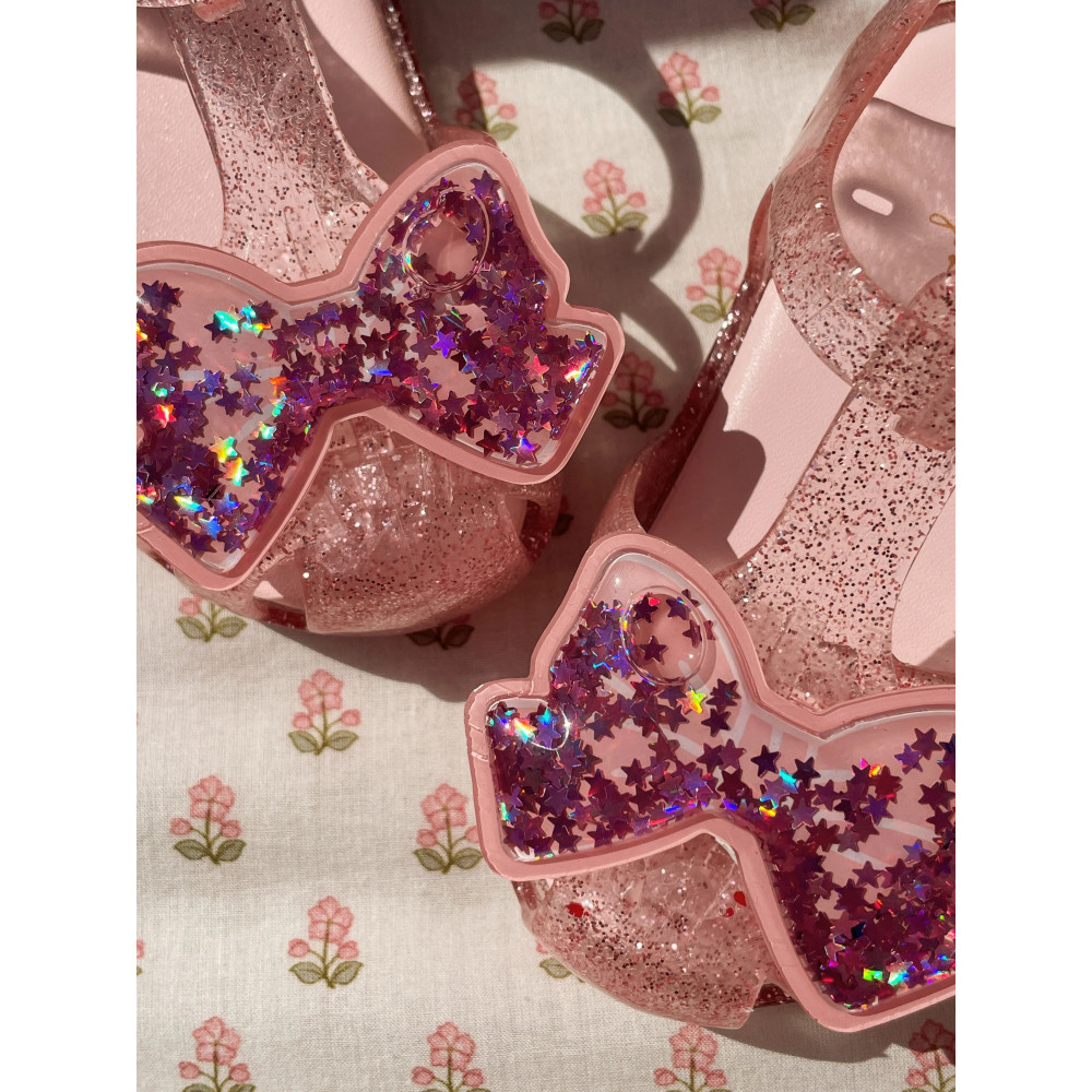 Блискучі пляжні сандалі з ПВХ із практичною застібкою на липучці, яку легко регулювати маленькими ручками. Дизайн з фірмовим бантом Konges Sløjd зверху - ніжно стискайте, щоб спостерігати за танцем блискіток. Розмірна таблиця: 22: 128 мм 23: 133 мм 24: 138 мм 25: 148 мм 26: 158 мм 27: 168 мм 28: 178 мм 29: 188 мм 30: 198 мм