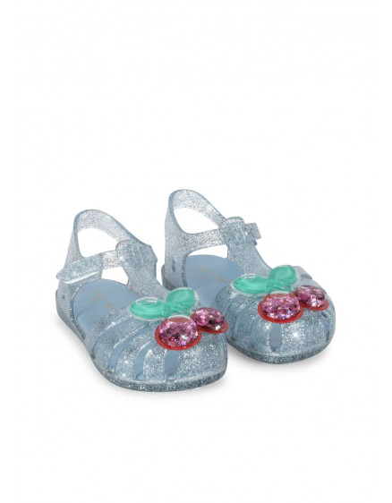 Блискучі пляжні сандалі з ПВХ із практичною застібкою на липучці, яку легко регулювати маленькими ручками. Дизайн з фірмовою вишенькою Konges Sløjd зверху - ніжно стискайте, щоб спостерігати за танцем блискіток. Розмірна таблиця: 22: 128 мм 23: 133 мм 24: 138 мм 25: 148 мм 26: 158 мм 27: 168 мм 28: 178 мм 29: 188 мм 30: 198 мм