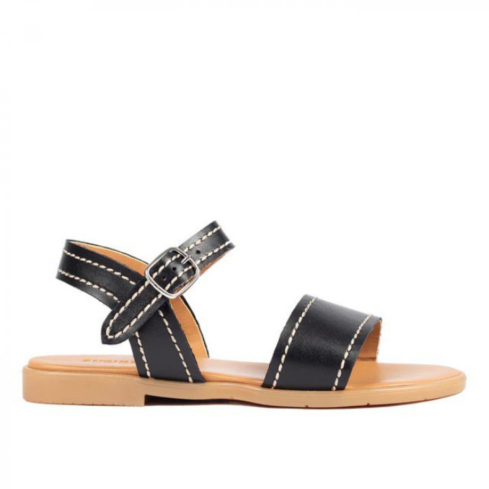 Босоніжки зі світлої шкіри з декоративною контрастною строчкою. Сандалі мають регульований ремінь на щиколотці із застібкою на пряжці, м’яку устілку, шкіряну підкладку без хрому та легку, м’яку та гнучку гумову підошву ANGULUS із підтримкою арки, яка залишає милий відбиток сонця. Виготовлений з натуральної дихаючої шкіри. Розроблено в Данії та зроблено вручну з любов'ю в Португалії.