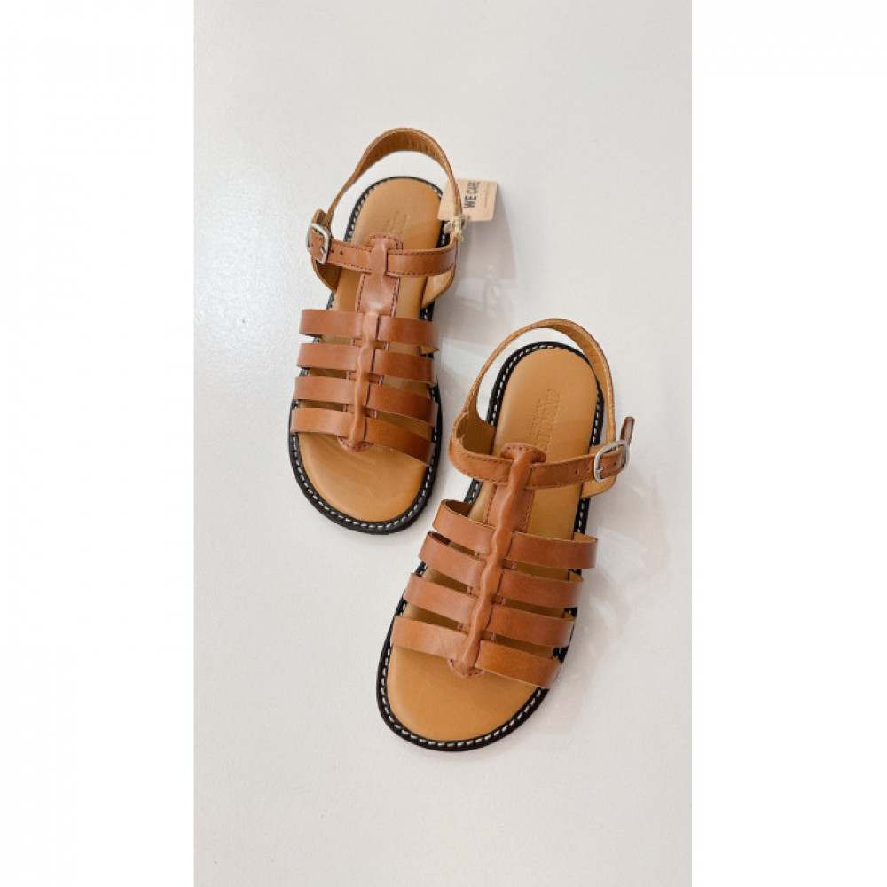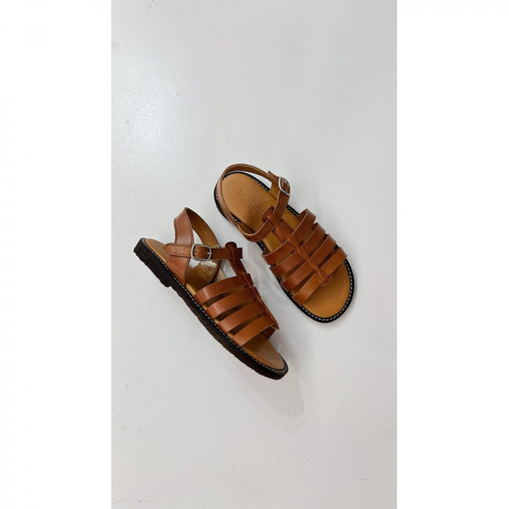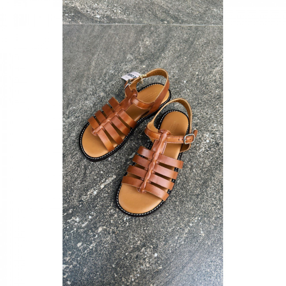 Прості шкіряні босоніжки з відкритим носком. Сандалі мають регульований ремінь на щиколотці з пряжкою, м’яку устілку, підкладку зі шкіри без хрому та легку, м’яку та гнучку темно-коричневу підошву з крепового каучуку з відновлюваного натурального каучуку з декоративною контрастною строчкою. Виготовлений з натуральної дихаючої шкіри. Розроблено в Данії та зроблено вручну з любов'ю в Португалії.