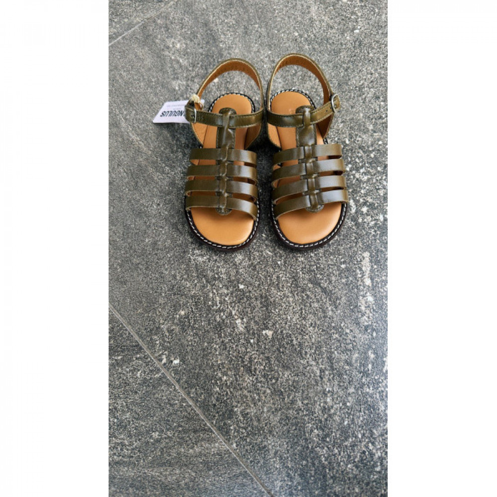 Прості шкіряні босоніжки з відкритим носком. Сандалі мають регульований ремінь на щиколотці з пряжкою, м’яку устілку, підкладку зі шкіри без хрому та легку, м’яку та гнучку темно-коричневу підошву з крепового каучуку з відновлюваного натурального каучуку з декоративною контрастною строчкою. Виготовлений з натуральної дихаючої шкіри. Розроблено в Данії та зроблено вручну з любов'ю в Португалії.