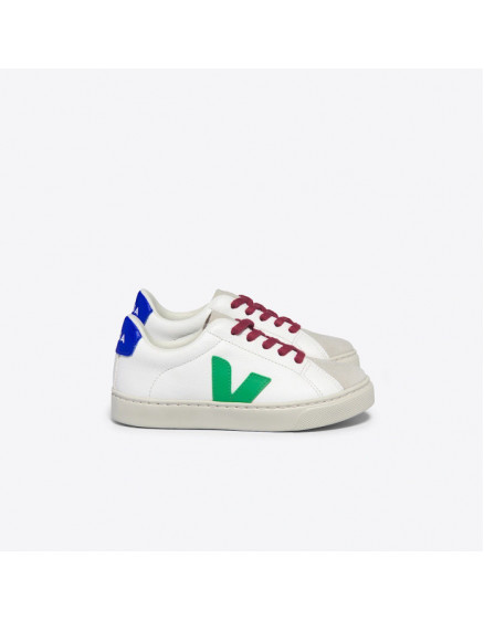 Veja esplar laces leather – white leaf paros є водночас стильними та екологічними, що робить їх ідеальними для дітей. Ці еколо гічно чисті кросівки виготовлені зі шкіри без хрому; вони відрізняються чистим білим дизайном з акцентами листя паросу. Цей новий стиль дитячих кросівок включає панелі із замші та шкіри без хрому, з логотипом V, виготовленим із синтетики та амазонської гуми. Шкіра Veja esplar laces – пари з білого листя забезпечують комфорт і підтримку, водночас дбайливо ставлячись до навколишнього середовища. Устілка виготов лена з біологічного EVA, органічної бавовни та інших екологічно чистих матеріалів. Для підошви використовується суміш амазонського каучуку, кремнезему та синтетичного каучуку. З підкладкою з переробленого поліестеру та шнурками з органічної бавовни ці черевики Veja відобра жають тверду прихильність до екологіч ної моди для дітей.