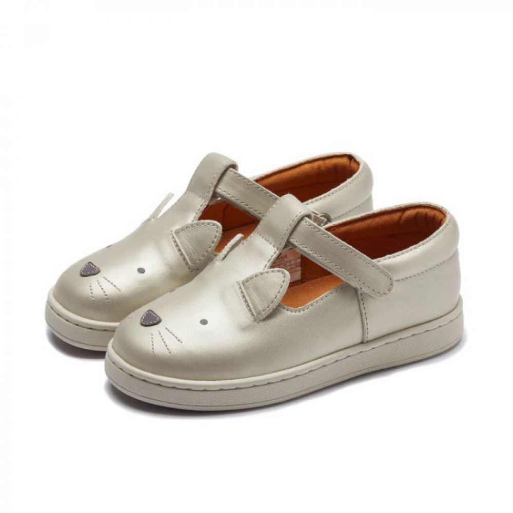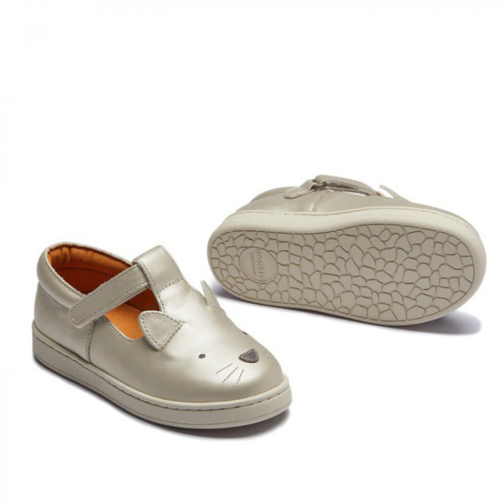 Грайливий наскок! Вони вирушають у літні пригоди в чарівних туфлях Esterre. Виготовлені зі 100% високоякісної шкіри з тонким металевим покриттям і з чарівними деталями кота Donsje, ця пара оснащена регульованими застібками-липучками, щоб одягати або знімати взуття абсолютно без проблем.