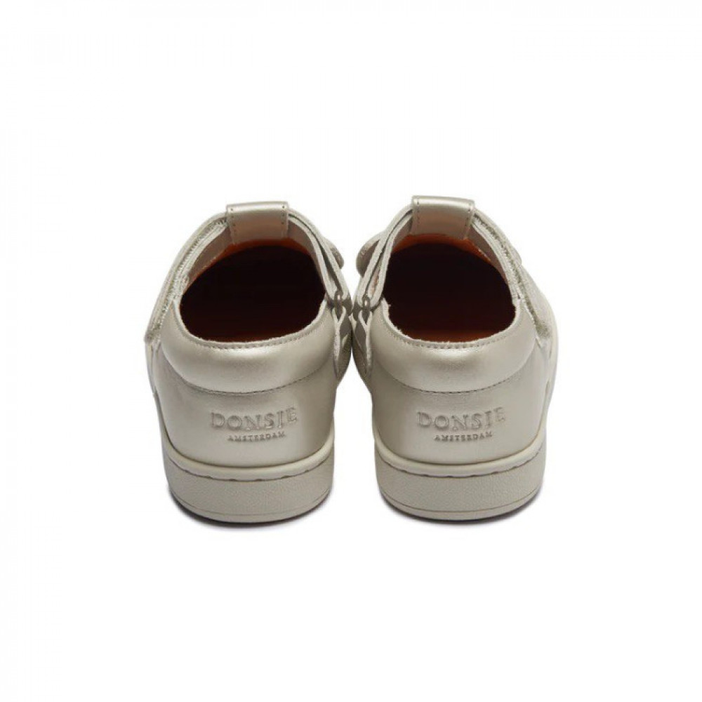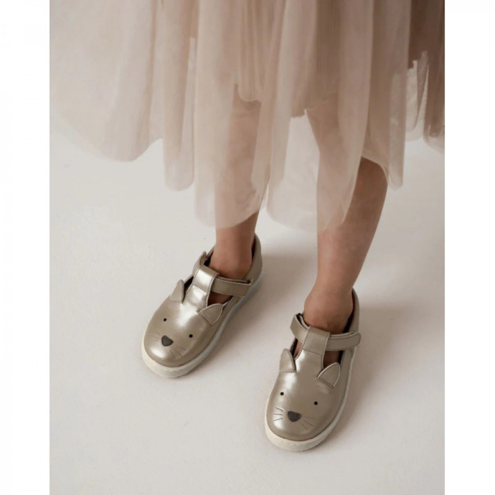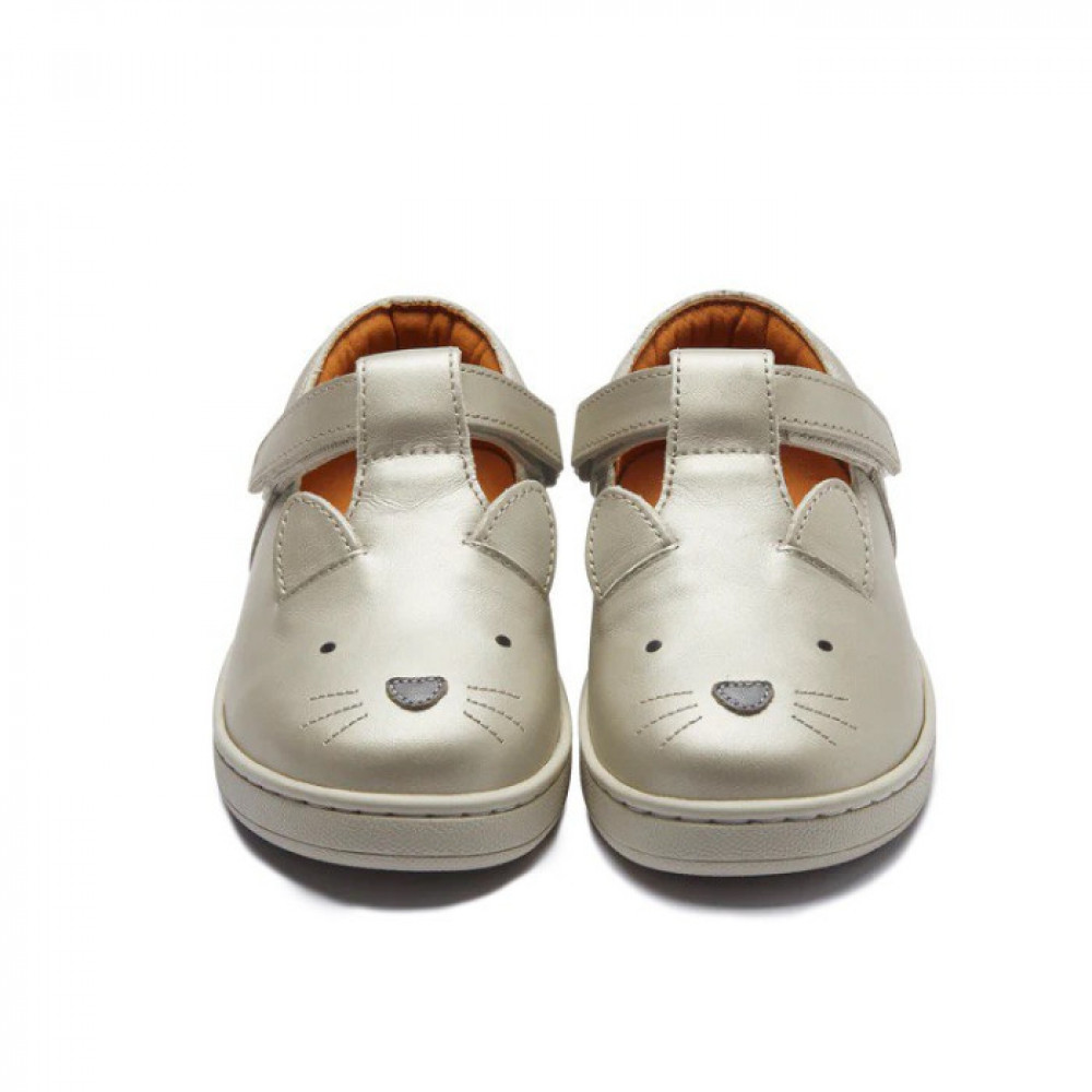 Грайливий наскок! Вони вирушають у літні пригоди в чарівних туфлях Esterre. Виготовлені зі 100% високоякісної шкіри з тонким металевим покриттям і з чарівними деталями кота Donsje, ця пара оснащена регульованими застібками-липучками, щоб одягати або знімати взуття абсолютно без проблем.