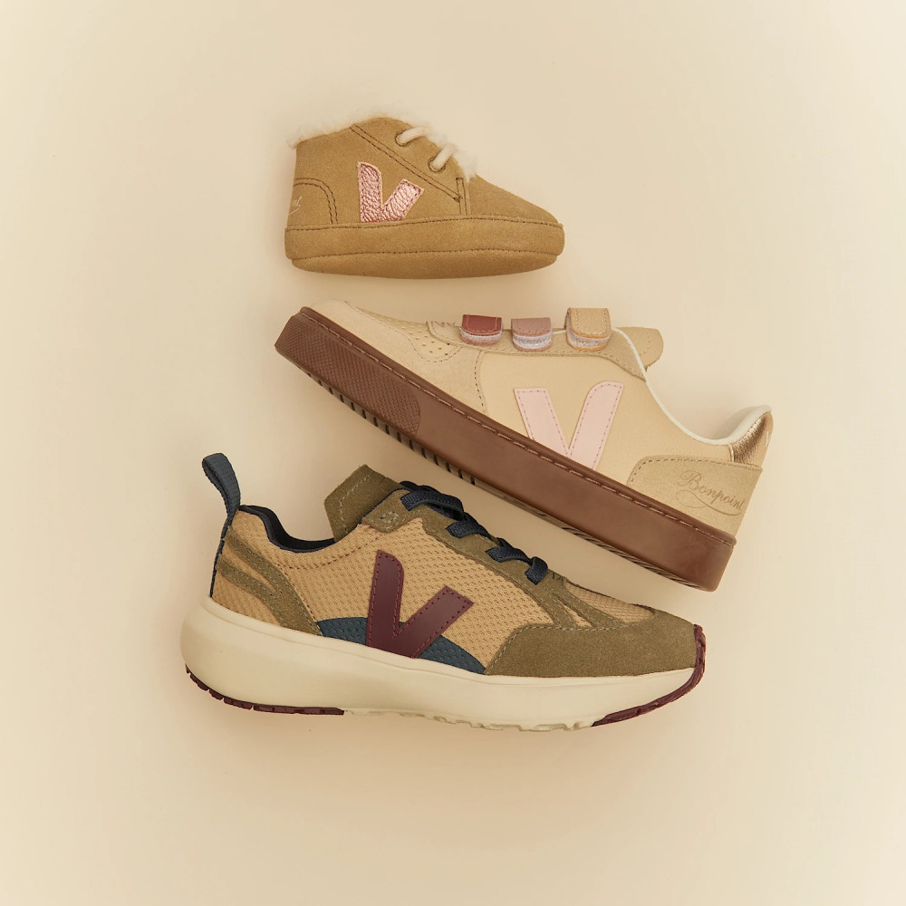 Ці кросівки V10 Bonpoint x Veja стануть незамінним завершальним штрихом для повсякденного образу. Ці м’які шкіряні туфлі мають контрастний логотип V на верху, а перфоровані носки забезпечують повітропроникність. Дизайн вирізняється оригінальним поєднанням матеріалів, включаючи замшу та зернисту шкіру, а також трьома ремінцями на липучках різних тонів. Органічна шкіра Закруглений носок Три ремінці на липучках Логотип Bonpoint ззаду Контрастна підошва