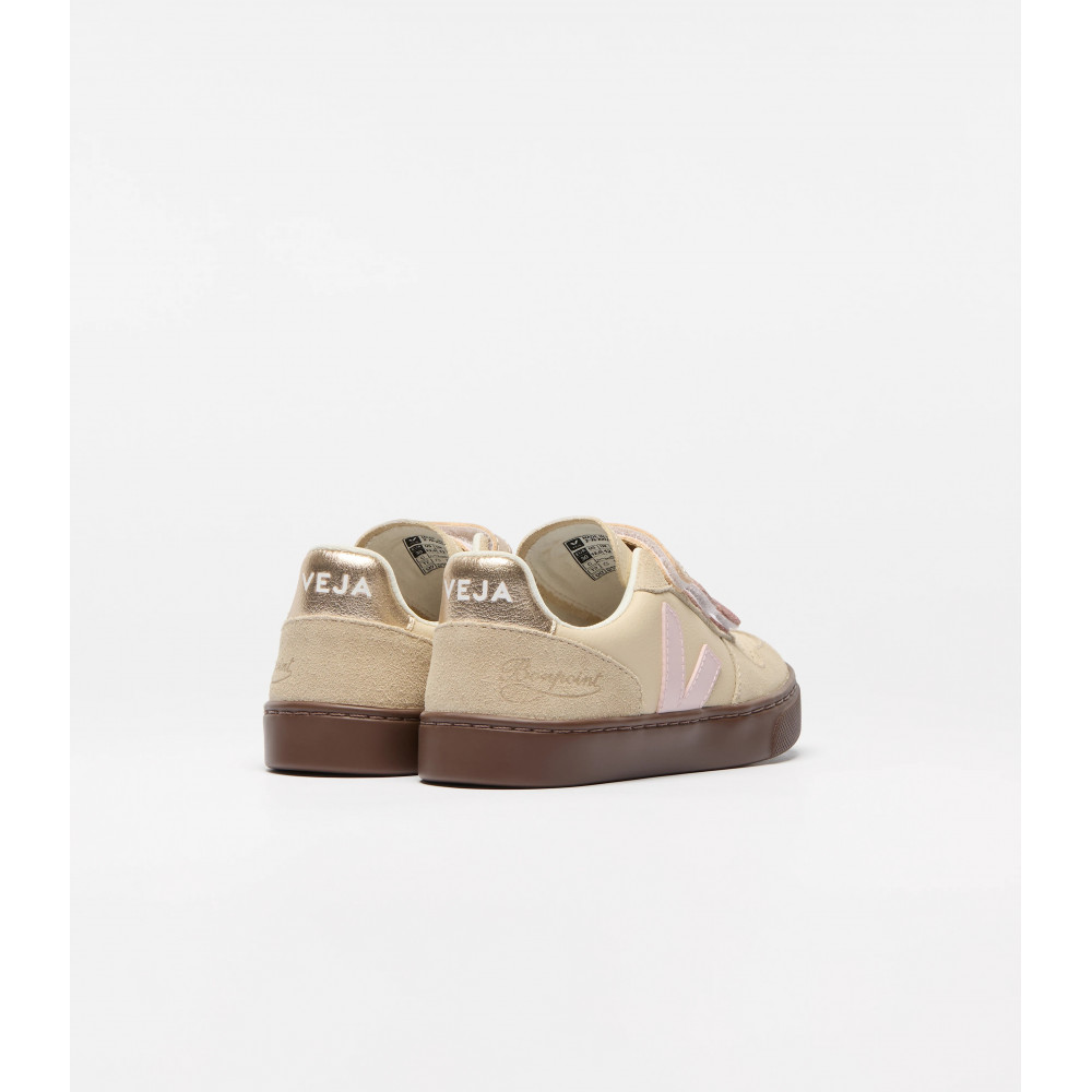 Ці кросівки V10 Bonpoint x Veja стануть незамінним завершальним штрихом для повсякденного образу. Ці м’які шкіряні туфлі мають контрастний логотип V на верху, а перфоровані носки забезпечують повітропроникність. Дизайн вирізняється оригінальним поєднанням матеріалів, включаючи замшу та зернисту шкіру, а також трьома ремінцями на липучках різних тонів. Органічна шкіра Закруглений носок Три ремінці на липучках Логотип Bonpoint ззаду Контрастна підошва