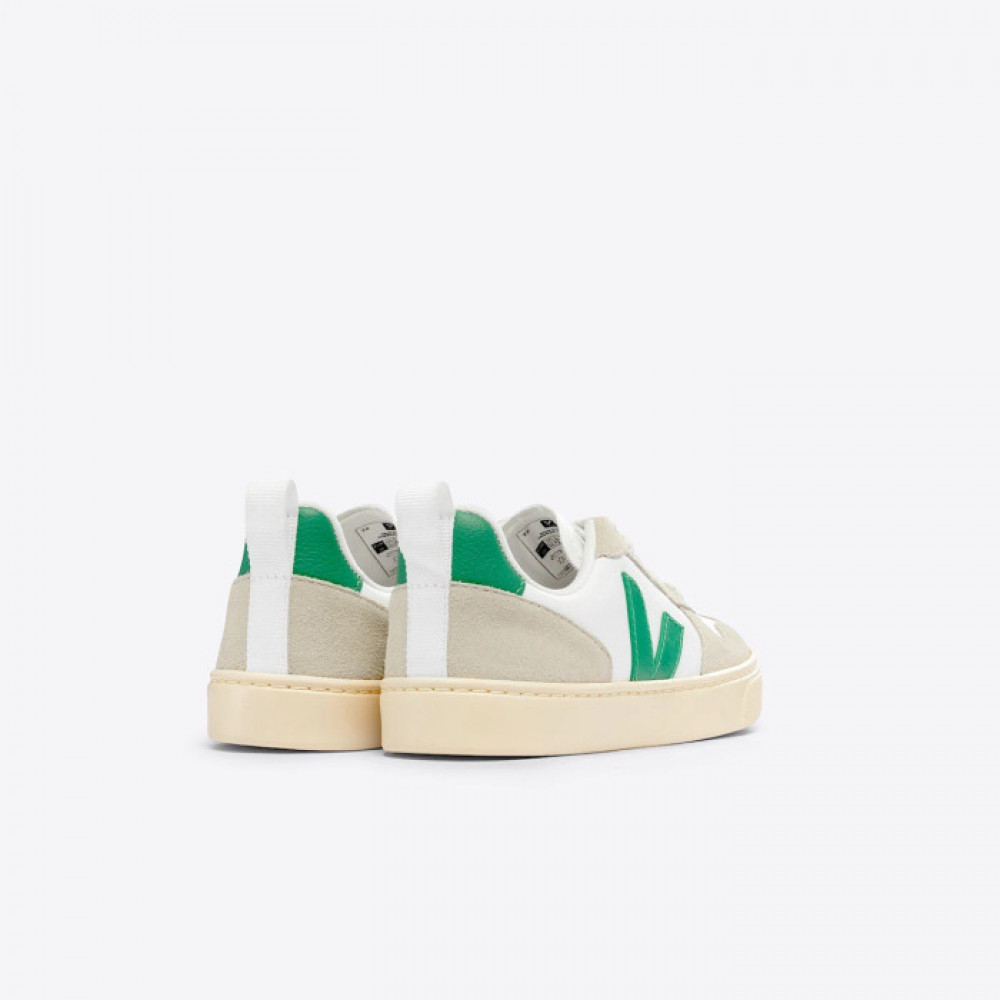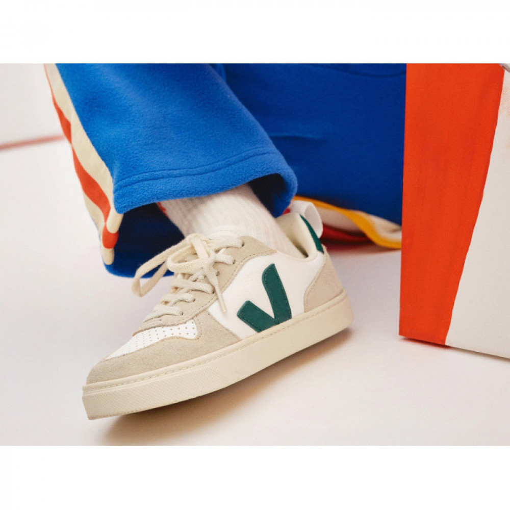 V-10 Teen шкіряні кросівки від Veja. Модель V-10, виготовлена з поєднання екологічно чистих і стійких матеріалів, символізує 10 років кохання. Посилена підошва та вбудований носок для кращого задоволення потреб дітей.