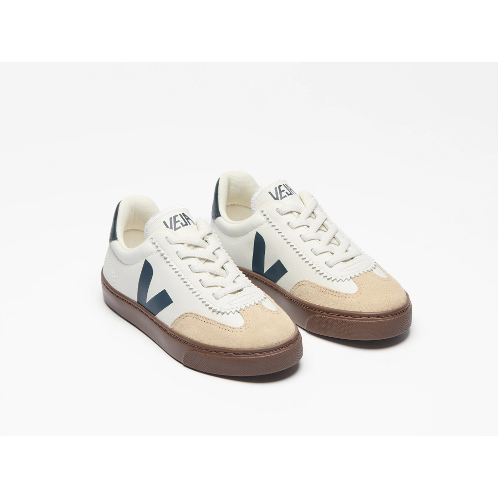 Модель Volley має вбудовані еластичні шнурки для легкого та швидкого взування, без зав'язування чи розв'язування вузлів. Шкіра O.T. (з органічним трасуванням) виготовляється зі 100% сертифікованих органічних ферм в Уругваї, країні, відомій своєю культурою тваринництва та високоякісною шкірою. Це наша найм’якша та найтонша шкіра. Вона механічно обробляється для надання їй гнучкості та витонченості, а потім дубиться в Бразилії з використанням меншої кількості барвників, ніж звичайна шкіра. VEJA використовує барвники, що відповідають нормам, та забезпечує відповідальне використання води під час процесу дублення.