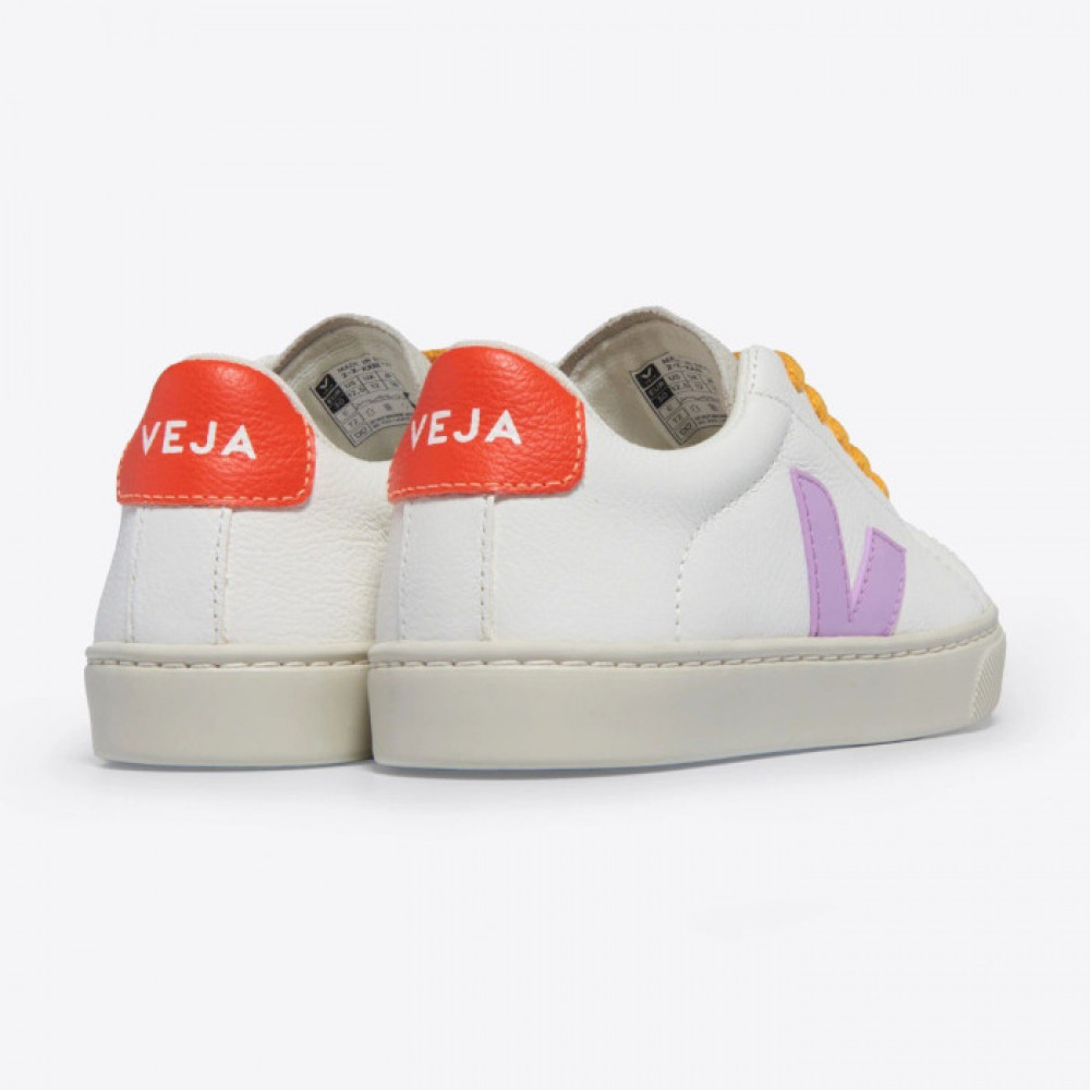 Ці дитячі шкіряні кросівки від Veja поєд нують стиль із екологічністю. Модель ESPLAR LACES має гладкий легкий верх зі шкіри без хрому, доповнений замшевими вставками та характерним логотипом із синтетики та амазонської гуми. Завдяки привабливій кольоровій гамі White Orchid Orange Fluo ці кросівки пропонують моду та функціональність для ваших малюків. Екологічне дитяче взуття ще ніколи не виглядало так добре. Це екологічно чис те дитяче взуття має устілку з біологічного матеріалу, підкладку з переробленого поліестеру та шнурки з органічної бавов ни. Вони ідеально підходять для екологічно свідомих батьків, які не хочуть йти на компроміс щодо якості та стилю взуття для своїх дітей.