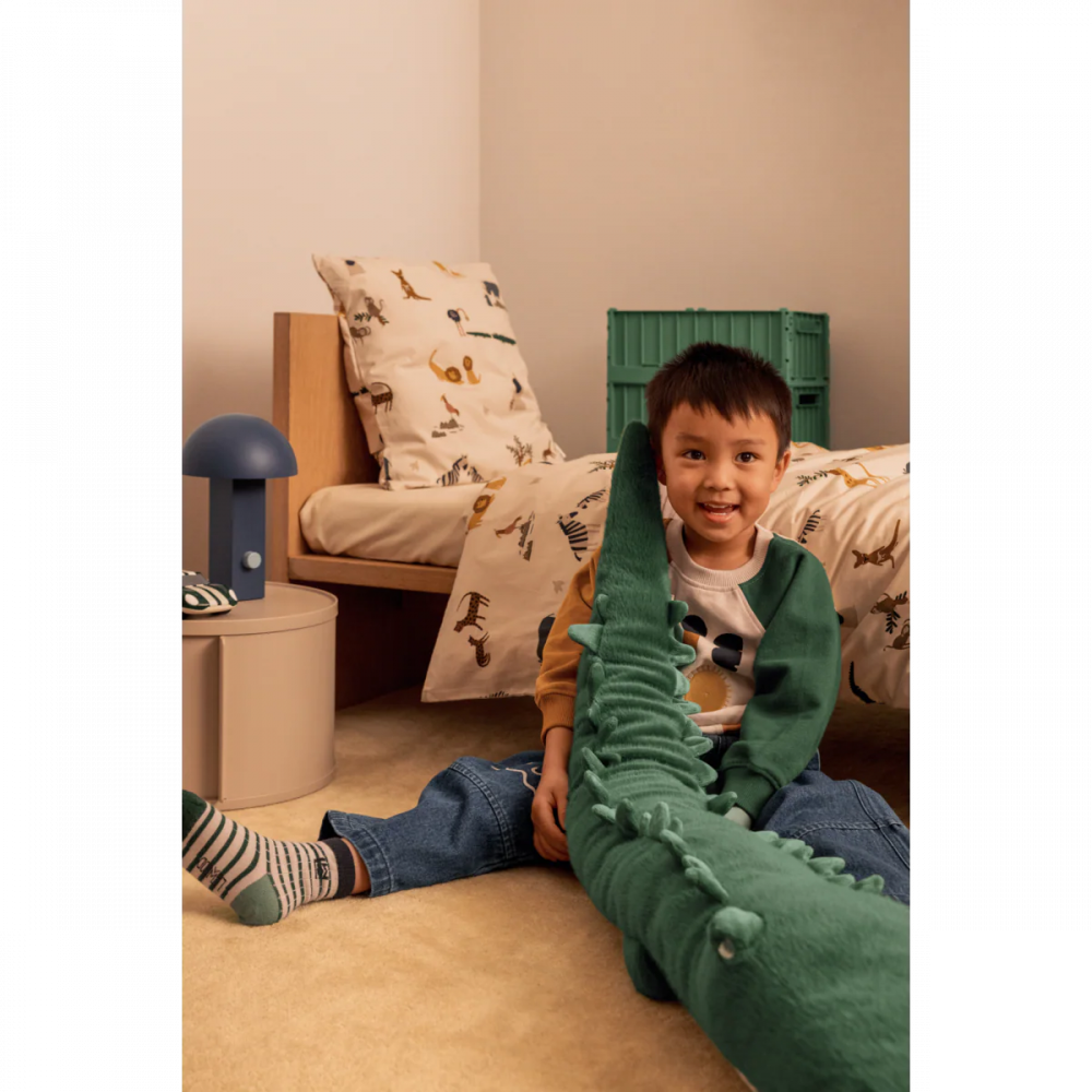 Цей плюшевий крокодил стане улюбленим компаньйоном для ваших дітей. Виготовлений з матеріалів, сертифікованих GRS, та з м'яким наповнювачем, більший крокодил стане ідеальним подарунком для вашої малечі. Великий плюшевий крокодил Виготовлений зі 100% м'якого переробленого поліестеру, сертифікованого GRS З надзвичайно м'яким наповнювачем Милий друг на все життя для вашої малечі Ідеально милий та декоративний компаньйон для дитячої кімнати Висота (см) 12; Довжина (см) 125