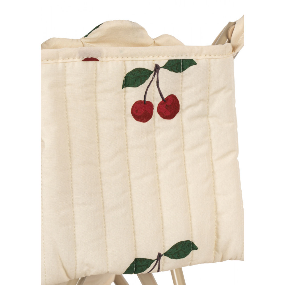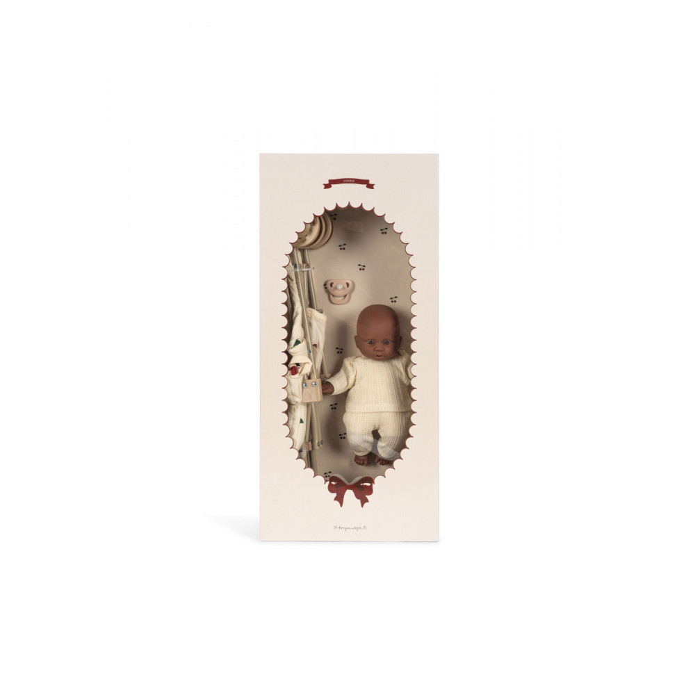 Ідеальний подарунковий набір для малюків: наш набір для ляльок Cherie включає ляльку та коляску з нашим класичним вишневим принтом. Коляска має наш класичний дизайн, оснащена ремнями безпеки, сумкою для переноски та подвійними колесами на всіх чотирьох ніжках для додаткової стійкості. Має знімну тканину. Постачається повністю зібраною, її легко складати та зберігати. Рама виготовлена із заліза з м’якими та губчастими ручками, що робить її зручною для ходьби. Набір коляски акуратно упакований у декоративну коробку, яка змусить маленькі очі сяяти. Підходить від 3 років.
