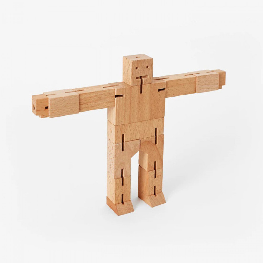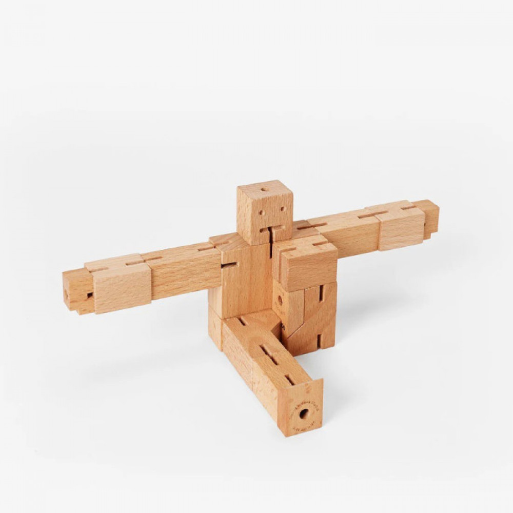 Дерев'яний іграшковий робот - складайте і розкладайте його, дайте йому сісти, стояти або бігати. Іграшка для годин веселощів для маленьких і дорослих. Дизайн Девіда Вікса Cubebot — дерев'яний іграшковий робот, створений за мотивами японських синтоїстських головоломок Kumi-ki. Виготовлений з дерева та еластичний, Cubebot можна розташувати так, щоб утримувати десятки поз. Коли приходить час відпочити, Cubebot складається назад у ідеальний куб. Класична іграшка для будь-якого віку, з якою гратимуть покоління. 10 см заввишки стоячи, 4 см в кубі