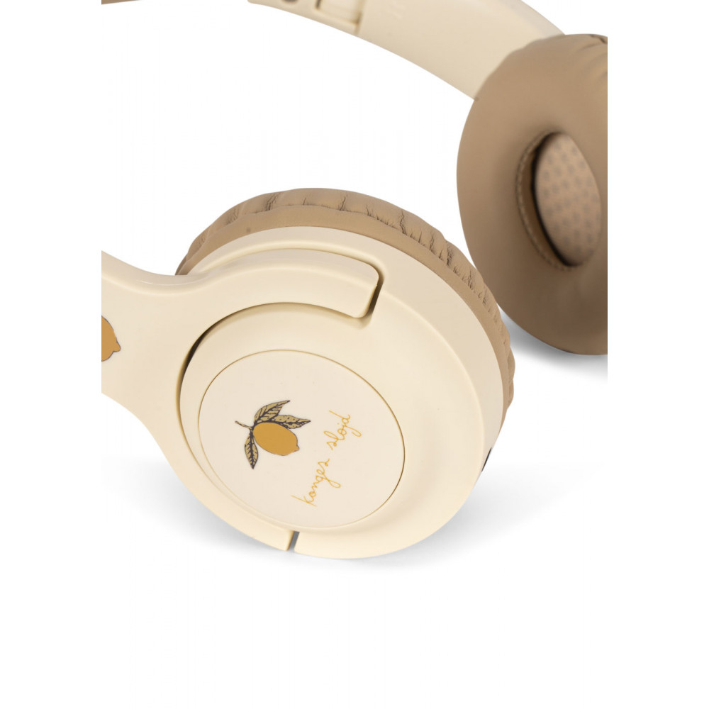 Бездротові Bluetooth-навушники з милою та зухвалою родзинкою Konges Sløjd. Оберіть один з наших фірмових принтів у вигляді лимона або вишні. Виготовлені з м’якими амбушурами та регульованим наголов’ям. Підключаються до ваших пристроїв через Bluetooth. Розроблені з безпечним обмеженням гучності 85 дБ для захисту слуху вашої дитини. 3+ роки