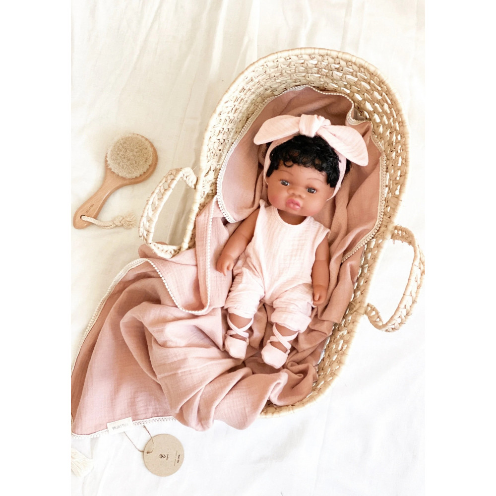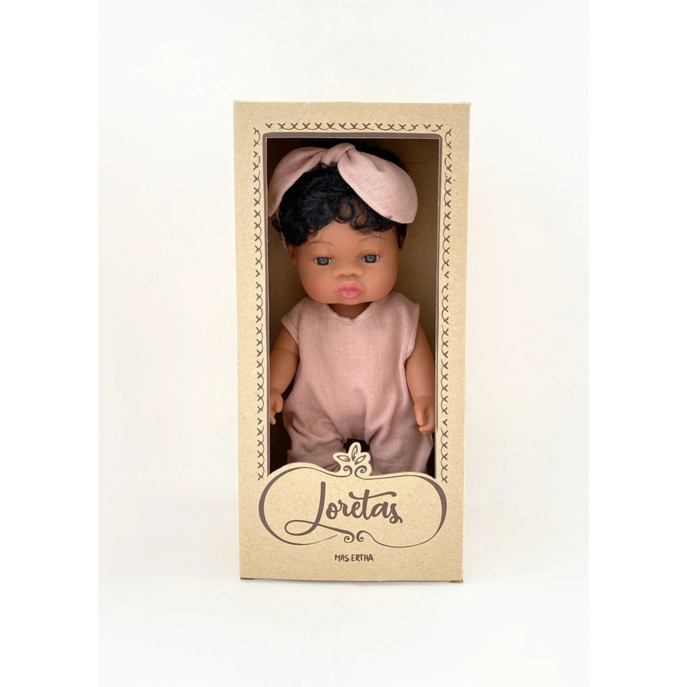 «To the Loretas» – це колекція з 4 ляльок, заснованих на принципах культурного різноманіття та репрезентуючих нашу планету протягом чотирьох пір року. Кожна Лорета пов’язана зі станцією через коротку історію, яку наймолодші із задоволенням почують. Loreta Shiny – Літо Яскрава та сповнена енергії, Loreta Shiny відображає літнє світло, довгі дні та незабутні пригоди. З сонячним відтінком вона приносить вільний та веселий дух цієї особливої пори року. Кожна Лорета містить комплект спідньої білизни, пов’язку для волосся, комбінезон та пару взуття, виготовлених вручну в Португалії зі 100% бавовняної марлі. Надзвичайно стійка упаковка виготовлена з переробленого картону. Розміри: 17 см x 35 см x 13 см