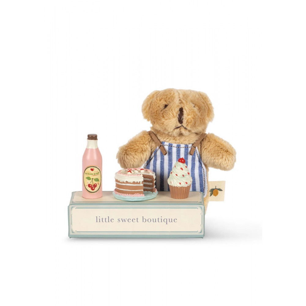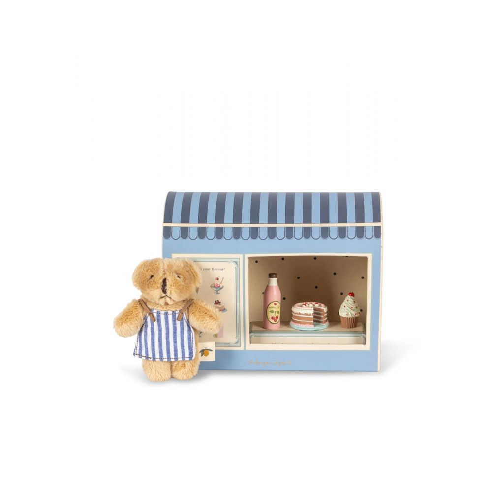 Солодощі для моєї коханої. Цей милий маленький бутік створений для нашого мініатюрного всесвіту ведмедиків і містить усе необхідне для ведення маленької кондитерської: 3 маленькі тістечка, пляшечку та маленького ведмедика у фартуху. Створено для годин веселощів. Підходить для дітей від 3 років.