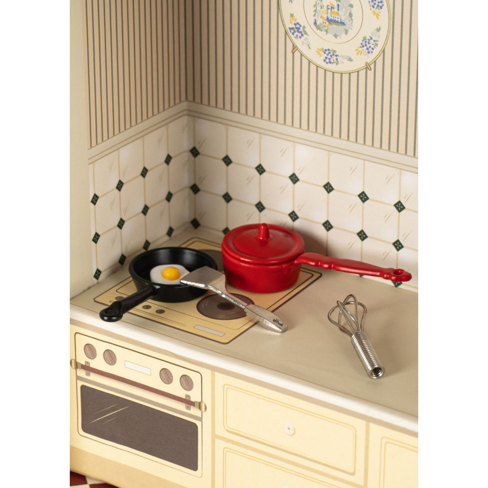 Такий крихітний і такий милий. Цей маленький будиночок створений для ваших улюблених нових крихітних ведмедиків. У мініатюрному будиночку є кухня та їдальня, невеликий стільчик та столик, трохи тістечок та напоїв, які готуються на кухні. У комплекті є крихітний ведмедик для гри. Підходить для дітей віком від 3 років.