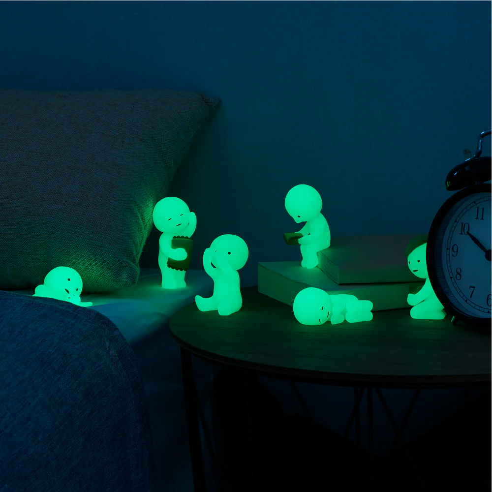 СМІСКІ у вашій спальні! СМІСКІ – це допитливі маленькі створіння, які люблять ховатися в кутках та невеликих просторах. СМІСКІ виготовлені з фосфоресцентного матеріалу, який поглинає світло та змушує виріб світитися в темряві. 6 видів + Може містити секрет Одна з цих 6 фігурок випадковим чином потрапляє до цієї упаковки. *Зверніть увагу, що немає гарантії збору всієї лінійки навіть при покупці 12 фігурок у наборі.