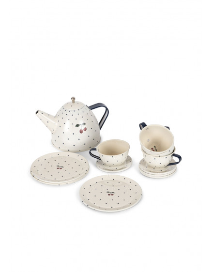 Влаштовуємо чайну вечірку! З нашим повним іграшковим чайним набором, виготовленим з міцної жерсті, саме час влаштовувати найпишніші маленькі зустрічі. Розроблений для годин захопливої гри в уяву, набір для чайної вечірки заохочує малюків використовувати свою уяву, наливаючи та подаючи своїм маленьким друзям. У комплект входить 15 предметів: чайник з кришкою, 4 чашки, 4 блюдця, 4 тарілки, піднос для подачі та футляр для перенесення.