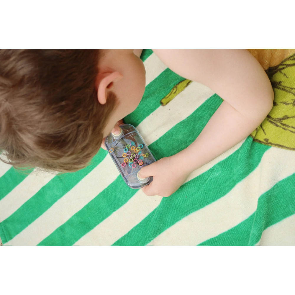 Розроблена з використанням фірмових фонів Konges Sløjd, ця весела гра з водними кільцями спонукає дітей натискати кнопки та вміло направляти різнокольорові кільця на плаваючі кілочки. Вона ідеально підходить для зміцнення дрібної моторики, покращення концентрації та пропонує безкінечні розваги – як у дорозі, так і для тихих моментів вдома. Підходить для дітей віком від 3 років.