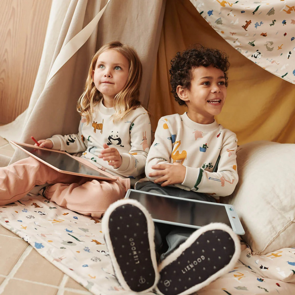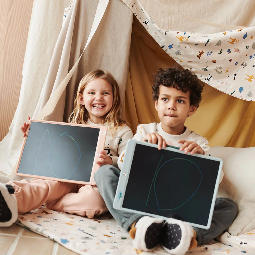 Чарівна дошка для малювання Zora від Liewood. РК-дошка для малювання, розроблена для безмежної творчості, у комплекті з ручкою. Легка та багаторазова, вона має блокування екрана для збереження малюнків, просту кнопку стирання та надійний тримач для ручки — ідеально підходить для розвитку уяви в дорозі. 13,5 дюймів.