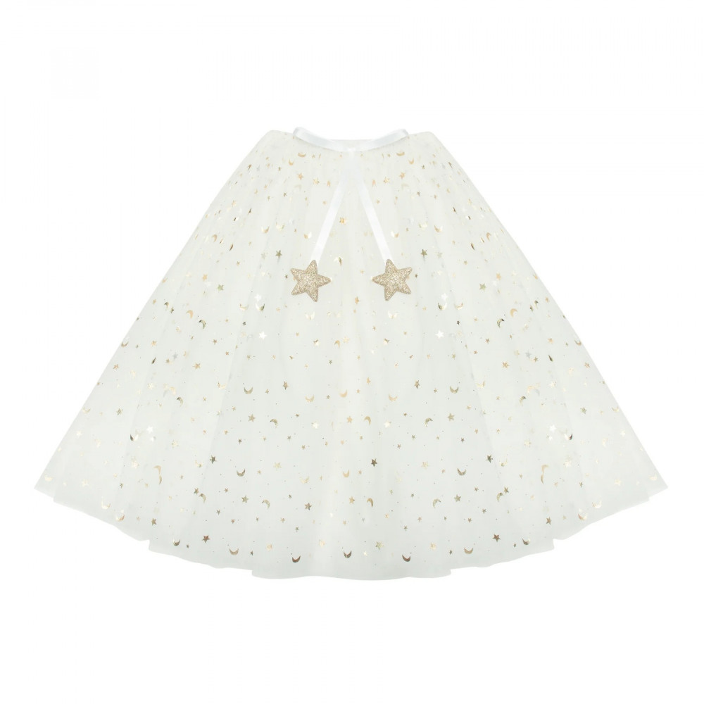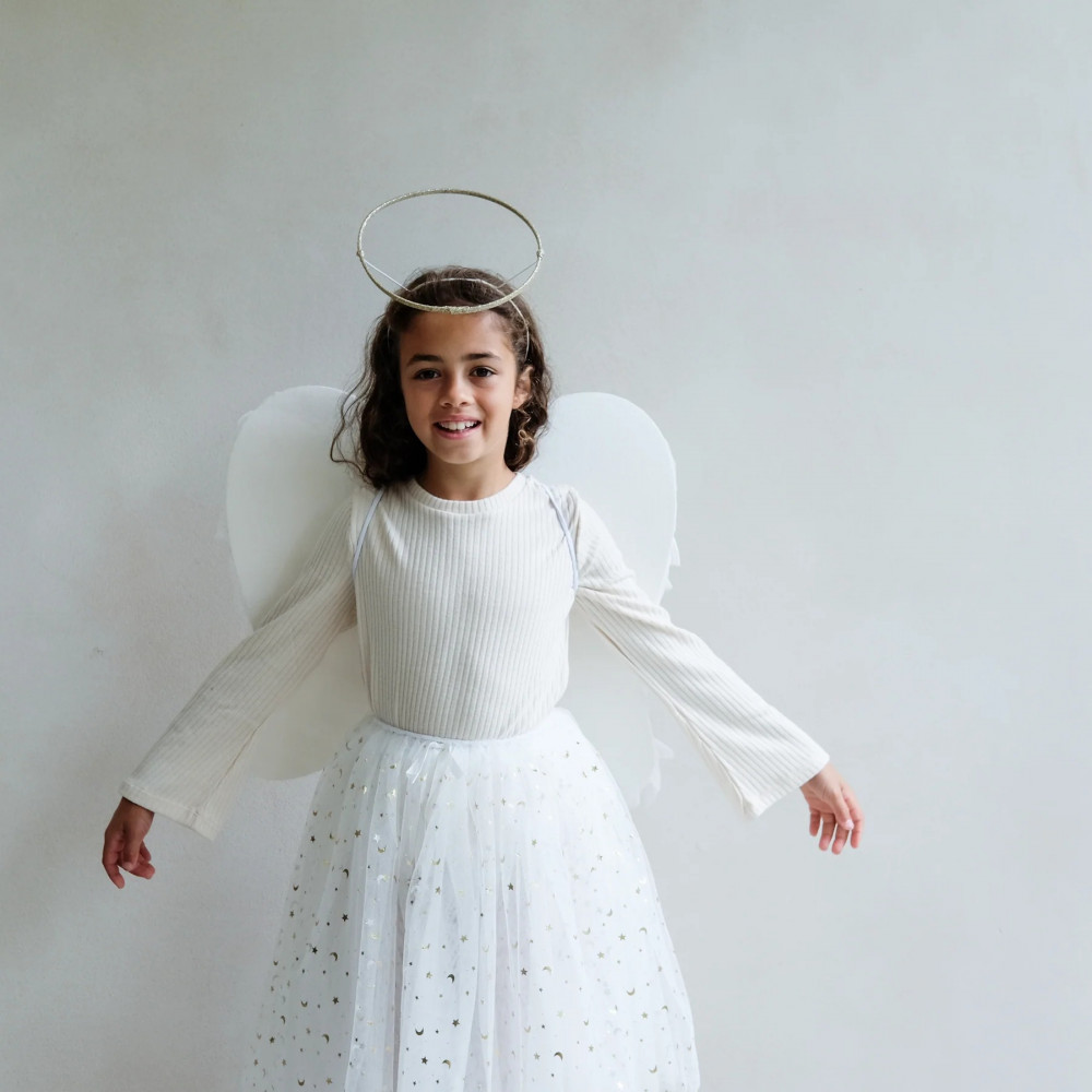Перетворіть їх на маленьких янголят миттєво! Незалежно від того, чи одягаються вони на свята, вечірки чи для ігор, ця пачка ідеально підійде для дітей будь-якого віку! Поєднайте її з нашою ангельською накидкою або головним убором у формі німбку для створення справді ангельського образу! Шари красивого білого тюлю, прикрашені металевими золотими місяцями та зірками Еластичний пояс приблизно 52 см завширшки Довжина приблизно 48 см Розмір підходить для дітей віком 3-10 років Тільки протирати Перевірено на безпеку Увага! Не підходить для дітей віком до 36 місяців