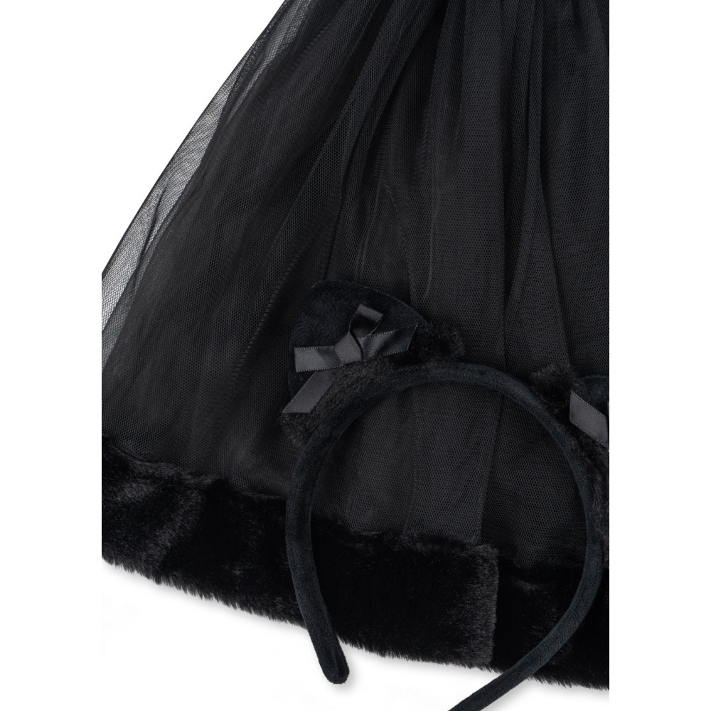Лапки вгору для нашого милого котика на Хелловін. Цей костюм включає чорну фатинову спідницю з еластичним поясом та пов'язку на голову з котячими вушками. Виготовлено зі 100% поліестеру 3+ роки