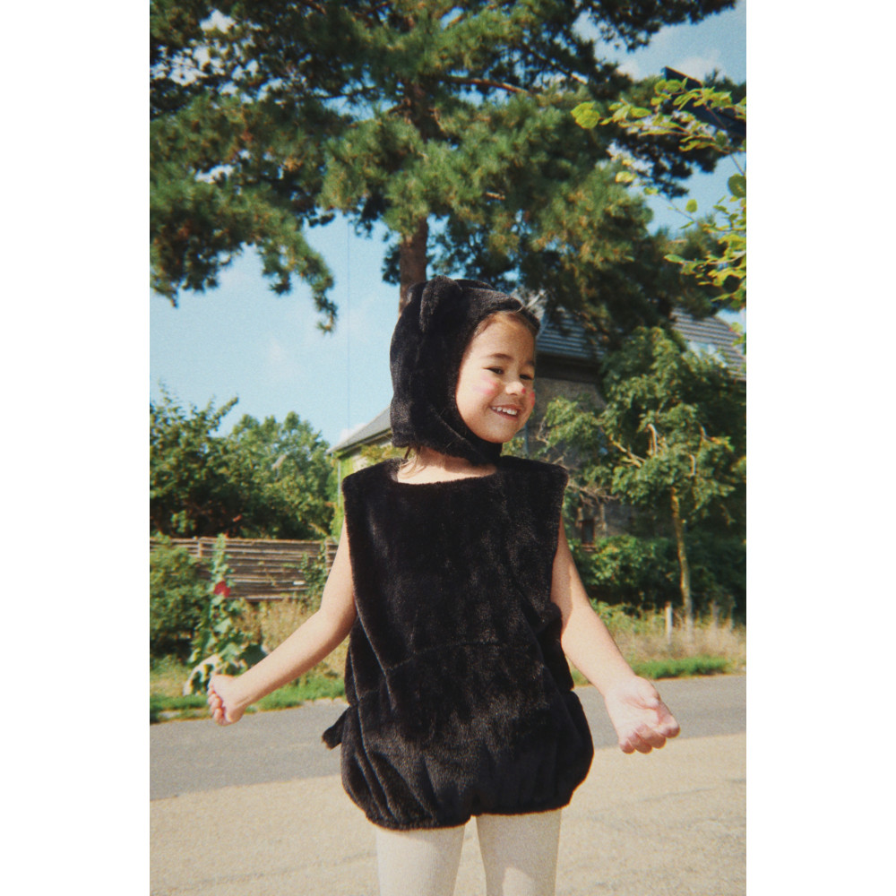 Костюм кота на Хелловін, м'який та пухнастий, зручний та легкий у використанні. Костюм включає шолом з котячими вушками та частину тіла з довгою стрічкою. Виготовлено зі 100% поліестеру, сертифіковано CE.