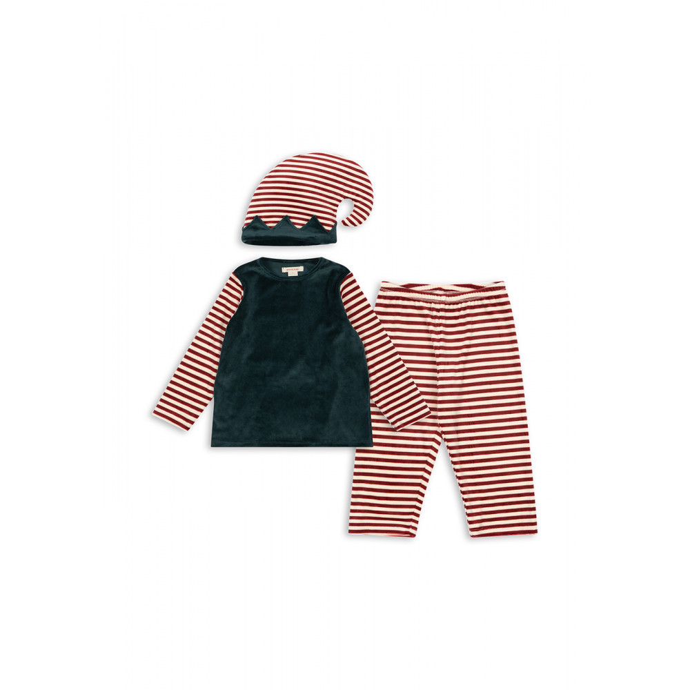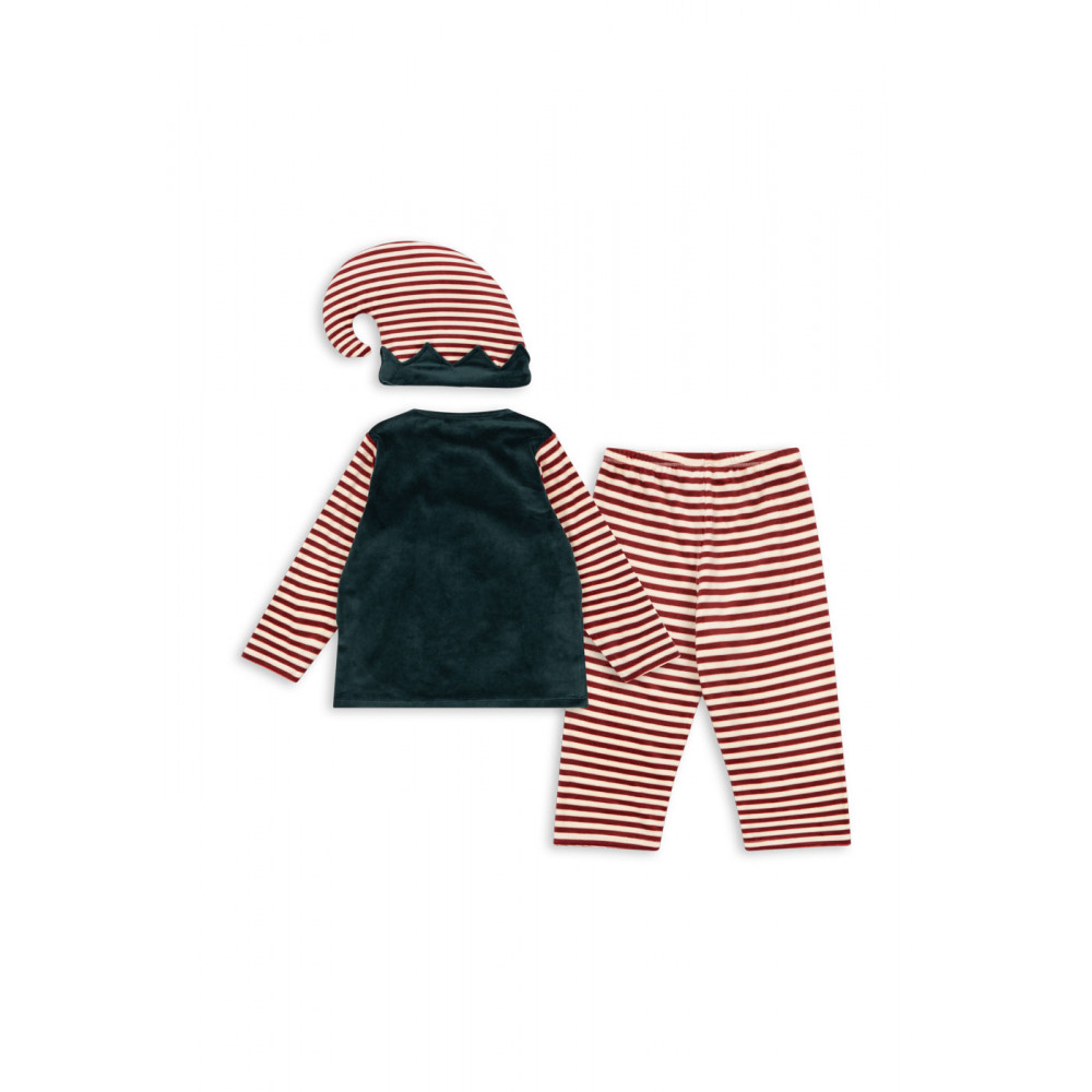 М'який костюм-трійка для маленьких ельфів. Костюм виготовлений з плюшевого оксамиту та включає блузку, штани в тон та капелюх ельфа.