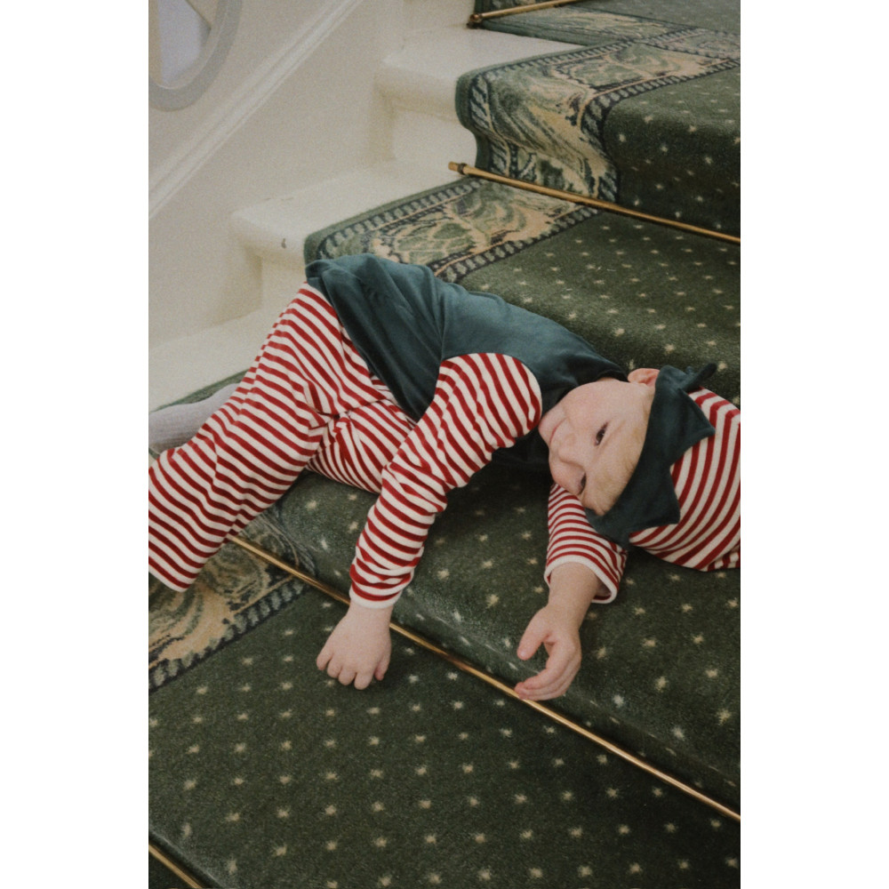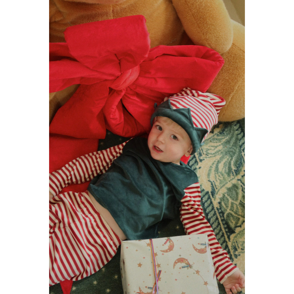 М'який костюм-трійка для маленьких ельфів. Костюм виготовлений з плюшевого оксамиту та включає блузку, штани в тон та капелюх ельфа.