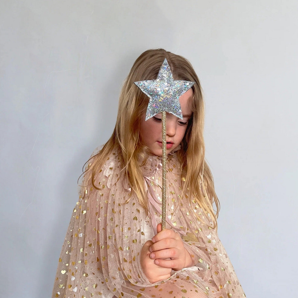 Посипте трохи зоряного пилу цією зірковою паличкою, прикрашеною блискітками! Ідеально підходить для магічних заклинань, виступів, вечірок та щоденних ігор! Чудовий подарунок на день народження або особливу подію! Зірка з м'якою підкладкою, вкрита срібними блискітками Паличка, обмотана золотою блискучою стрічкою