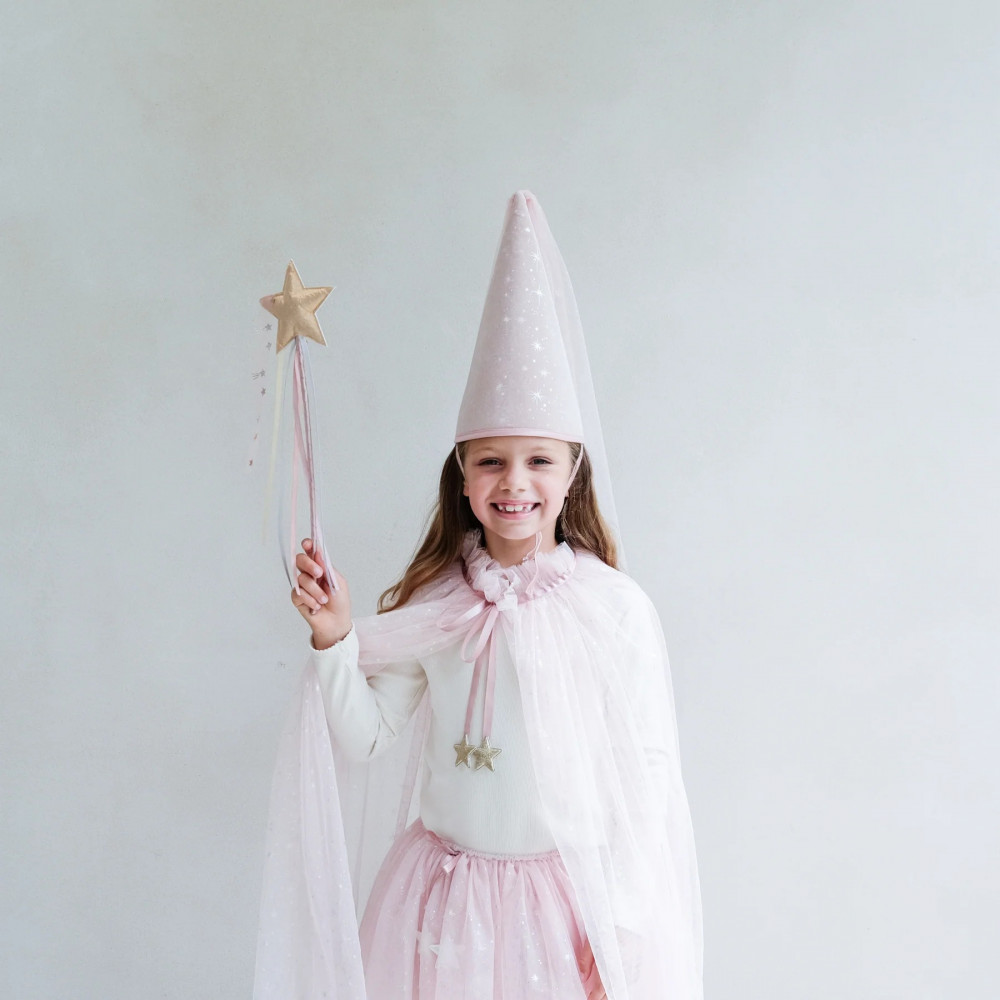 Пориньте у світ чарів з нашою мерехтливою шапочкою принцеси! Виготовлена з наймрійливішого ніжно-рожевого оксамиту, розсипаного мерехтливими зірками - чому б не поєднати її з нашою пачкою або накидкою в тон для справжнього королівського перетворення! Виготовлена з ніжно-рожевого оксамиту, розсипаного металевими зірками Розмір підходить для дітей віком 3-10 років Оксамитовий ремінець на підборідді, що застібається на липучку Висота приблизно 30 см Перевірено на безпеку Тільки протирати Попередження! Не підходить для дітей віком до 36 місяців