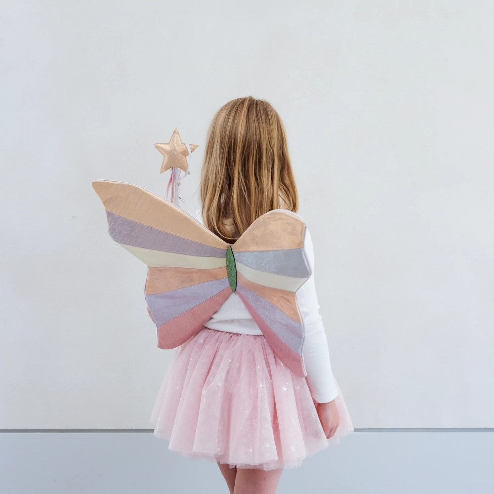 Наші бестселери міжгалактичних крил стали ще кращими! Виготовлені з наймрійливішого поєднання ніжно блискучих тканин, ці крила неодмінно порадують будь-якого маленького фаната одягання! Виготовлені з найгарнішого поєднання тканин у чудовій веселці кольорів та текстур. Розміри крил приблизно 43 см (висота) x 52,5 см (ширина). Мають еластичні ремінці. Тільки протирати. Перевірено на безпеку. Увага! Не підходить для дітей віком до 36 місяців.