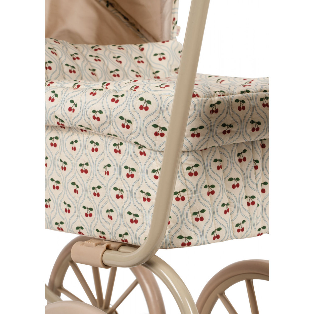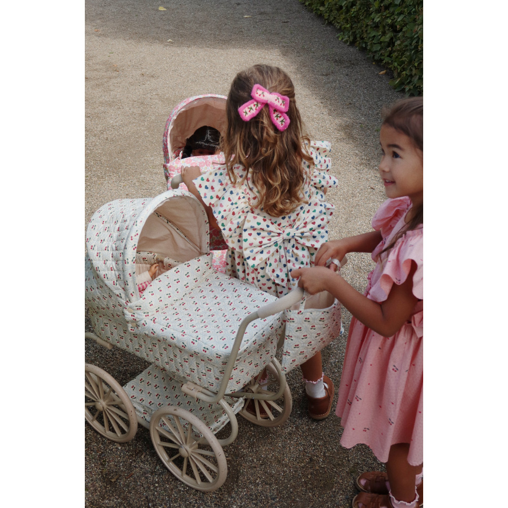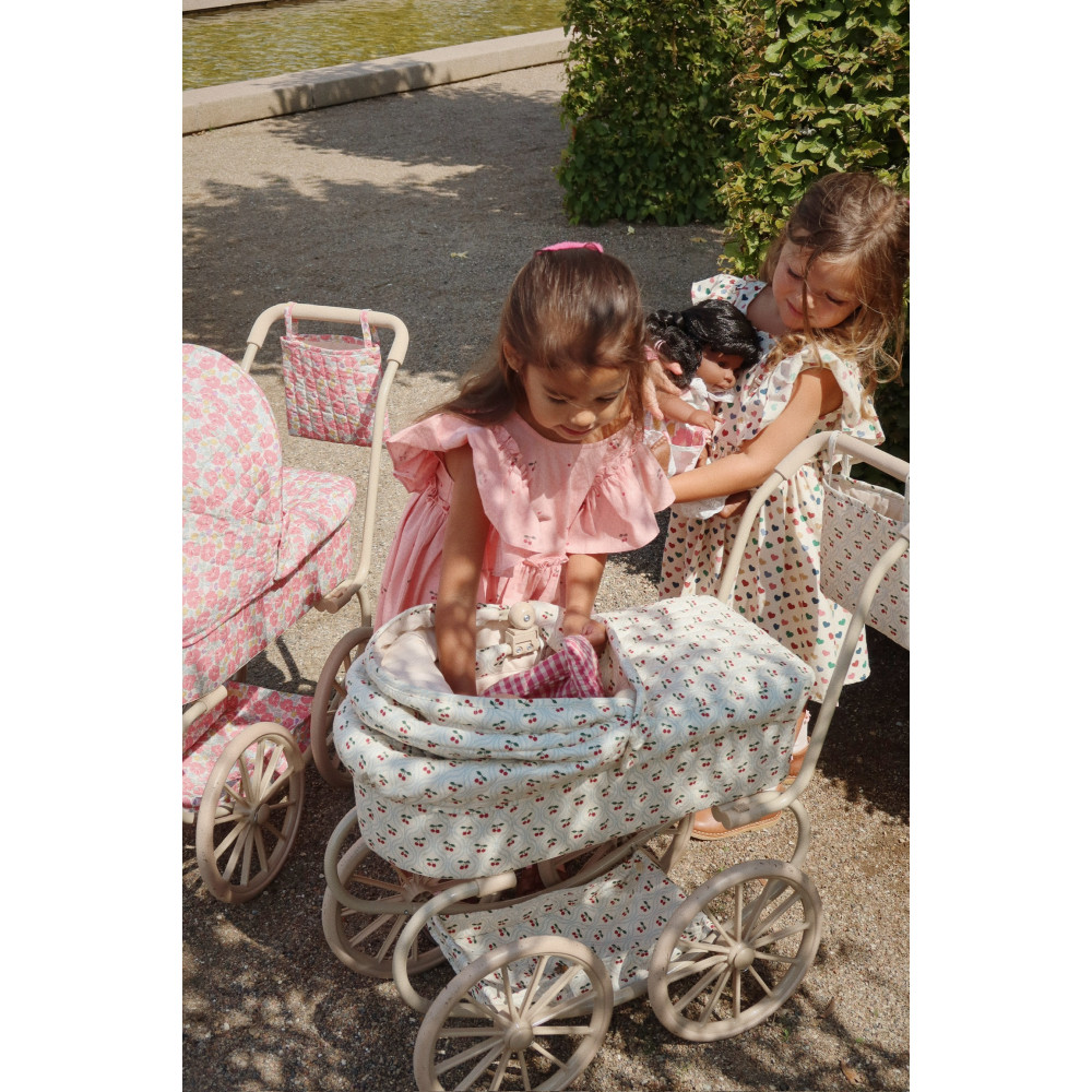 Візок для ляльок у вінтажному стилі з чотирма великими колесами, що забезпечують легкість та стійкість для маленьких дітей. Виготовлений з стьобаної тканини та має ніжні фестончасті краї. Візок для ляльок включає м'який матрац та кошик для зберігання з м'якою підкладкою. Каркас виготовлений з металу з м'якими губчастими ручками. Візок для ляльок постачається повністю зібраним, його легко складати та зберігати. Розміри: В: 72 см x Ш: 31 см x Д: 55 см Підходить для дітей віком від 3 років.