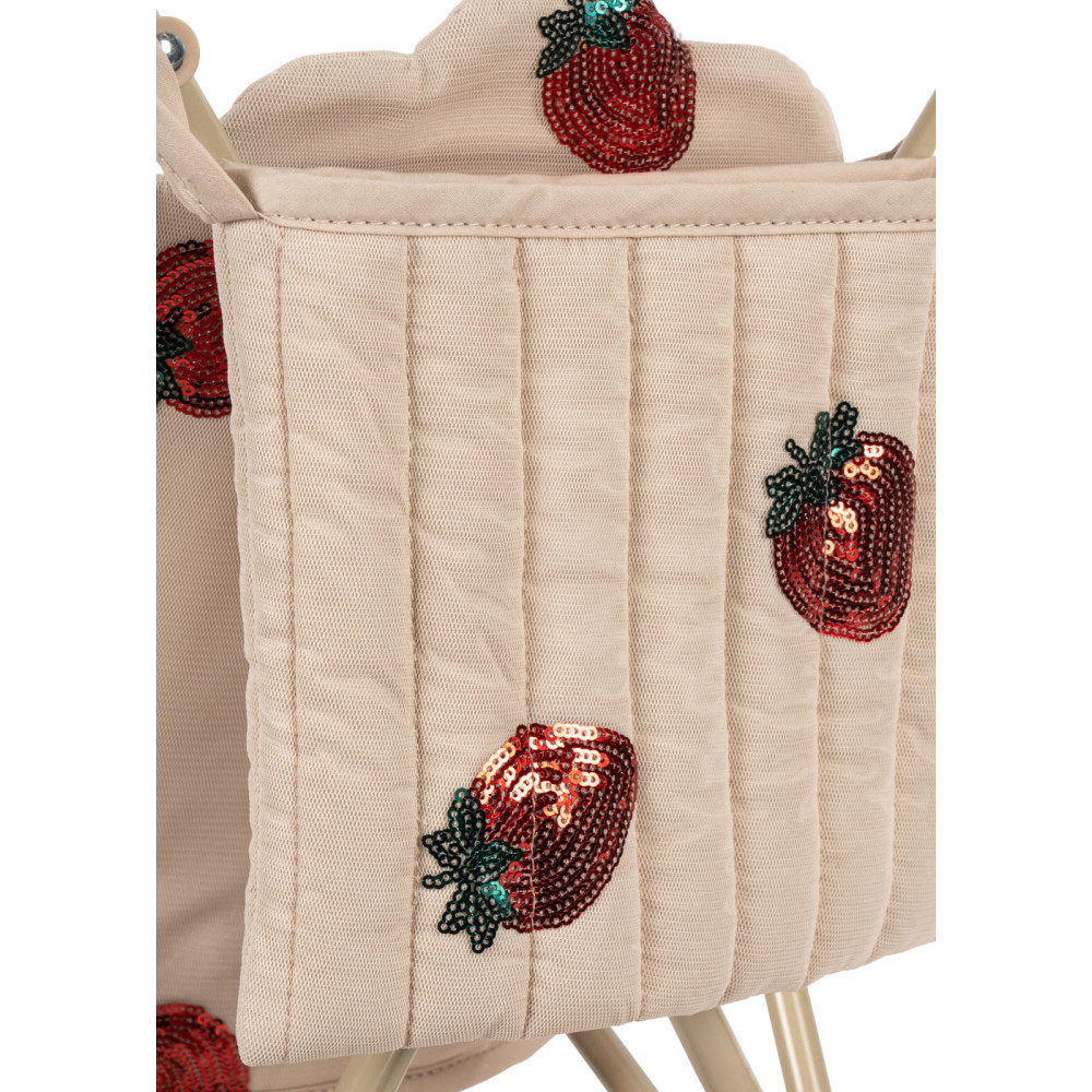 Візок для ляльок оснащений ремнями безпеки, сумкою-переноской та подвійними колесами на всіх чотирьох ніжках для додаткової стійкості. Має знімну тканину. Постачається повністю зібраним, легко складається та зберігається. Рама виготовлена зі заліза з м'якими та губчастими ручками, що робить її зручною для ходьби. В: 56 x Ш: 27 x Г: 46 см Підходить від 3 років