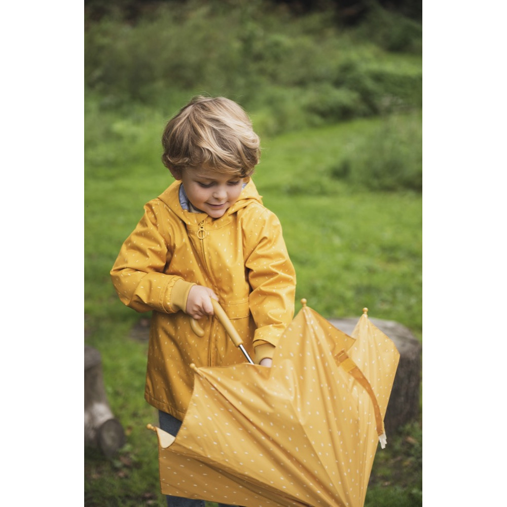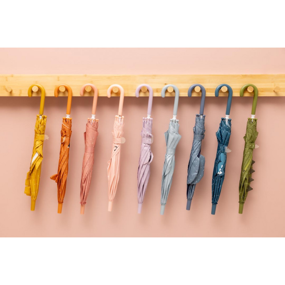 Ходімо співати під дощем з нашими парасольками-тваринками, виготовленими з переробленої тканини! Миттєво скрасьте сірі дні нашими усміхненими мордочками тварин, щоб ваша малеча залишалася сухою! Коли йде дощ, ця весела парасолька оживить атмосферу. Ви можете вибрати між Містером Білим Ведмедем, Містером Лисом, Місіс Слонею, Місіс Кроликом, Містером Мавпочкою, Містером Крокодилом та Містером Левом. Їхні висячі вушка весело підстрибуватимуть, поки ваша малеча стрибатиме по калюжах дощу! Парасолька виготовлена ​​зі 100% переробленого поліестеру. Безпечна розсувна система для відкривання та закривання парасольки спеціально розроблена для маленьких пальчиків. Парасолька має міцний, високоякісний та легкий алюмінієвий каркас. Маленький ремінець з хвостиком у формі тварини дозволяє акуратно зберігати парасольку, коли світить сонце. Розміри (ДхШхВ) 60x70x0