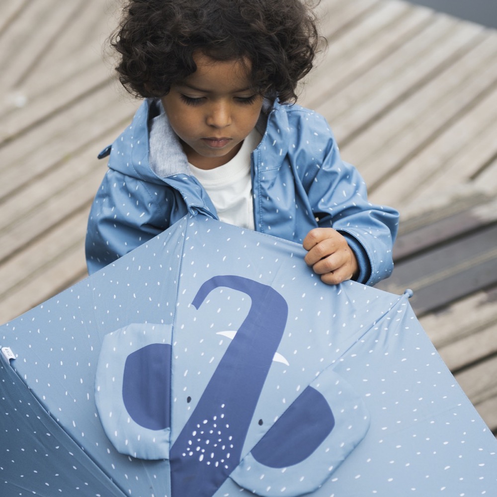 Ходімо співати під дощем з нашими парасольками-тваринками, виготовленими з переробленої тканини! Миттєво скрасьте сірі дні нашими усміхненими мордочками тварин, щоб ваша малеча залишалася сухою! Коли йде дощ, ця весела парасолька оживить атмосферу. Ви можете вибрати між Містером Білим Ведмедем, Містером Лисом, Місіс Слонею, Місіс Кроликом, Містером Мавпочкою, Містером Крокодилом та Містером Левом. Їхні висячі вушка весело підстрибуватимуть, поки ваша малеча стрибатиме по калюжах дощу! Парасолька виготовлена ​​зі 100% переробленого поліестеру. Безпечна розсувна система для відкривання та закривання парасольки спеціально розроблена для маленьких пальчиків. Парасолька має міцний, високоякісний та легкий алюмінієвий каркас. Маленький ремінець з хвостиком у формі тварини дозволяє акуратно зберігати парасольку, коли світить сонце. Розміри (ДхШхВ) 60x70x0
